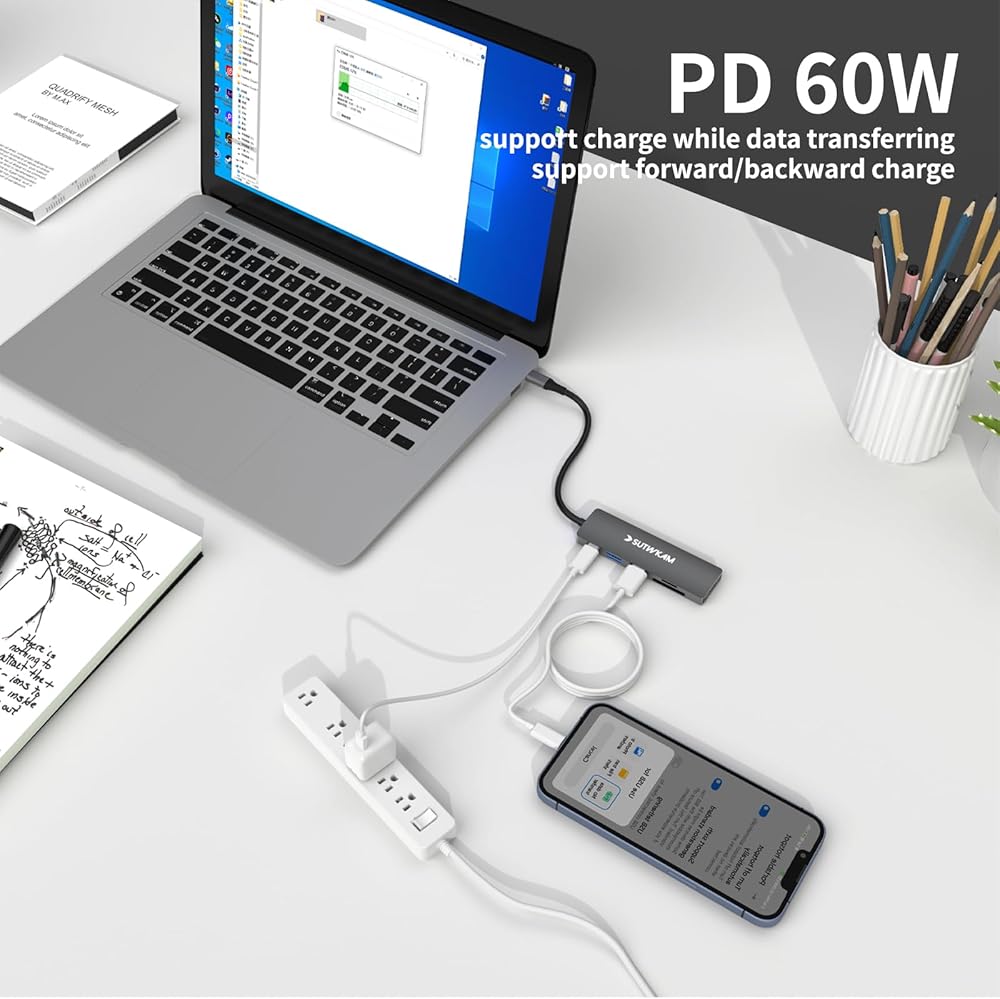 【Powerful 60W Charging】: Never worry about power again. Our PD charging port provides 60W power, charging laptops while ensuring undisturbed HDMI connection and data transmission.
