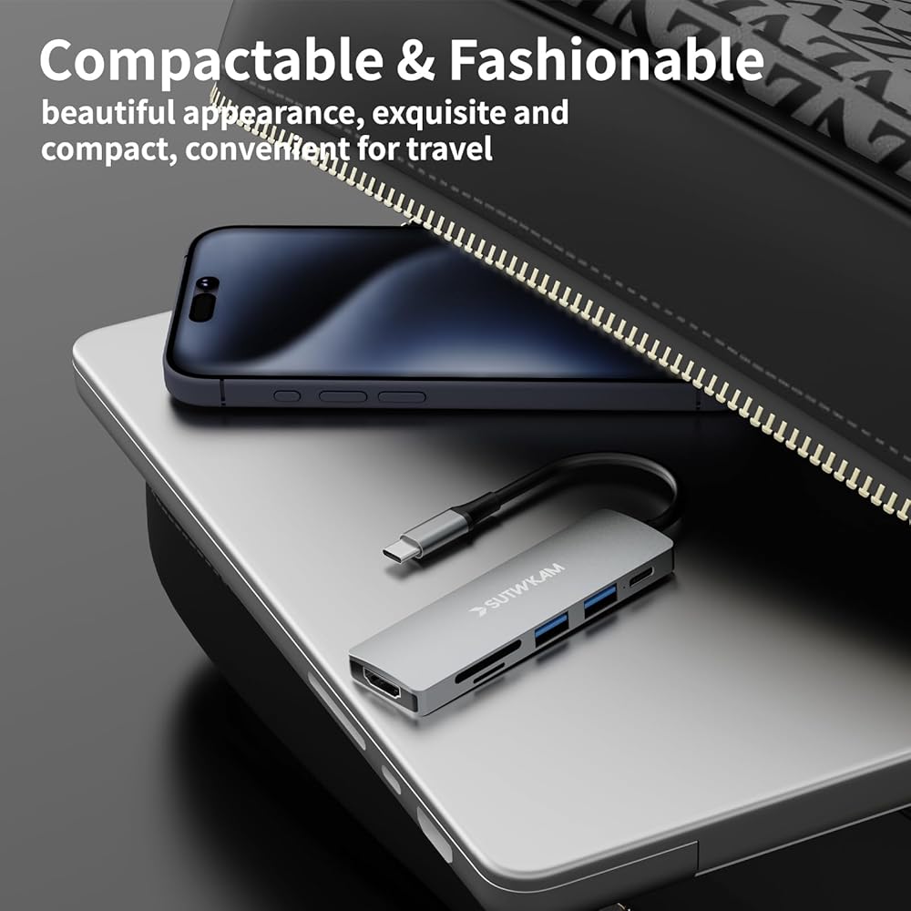【Comprehensive Connectivity】: Experience seamless digital life with our SUTWKAM USB C to HDMI adapter. It features 4K HDMI, PD60W USB C, USB 3.0/2.0 port, and SD/TF card reader, perfect for presentations, file transfers, and card readings.