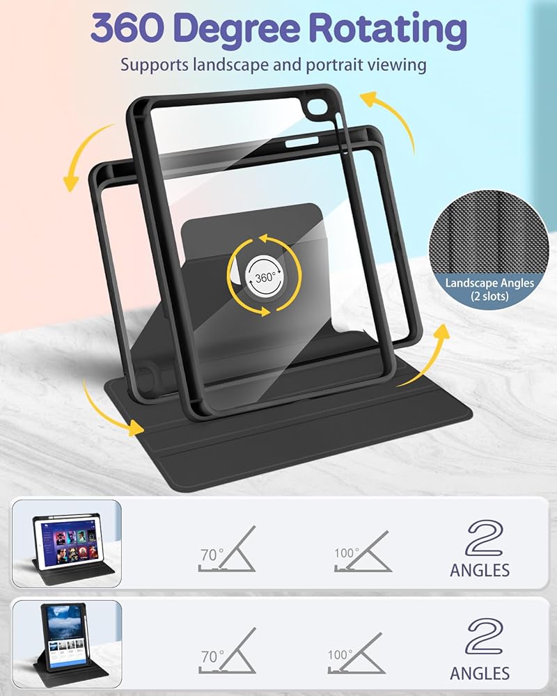 【360 Degree Rotating Stand】: This case for iPad mini 4/5 cover features an advanced Rotating Stand design, allowing you to effortlessly switch between landscape and portrait orientations for a full range of viewing and usage possibilities.Provide you comfortable viewing and typing experiences.