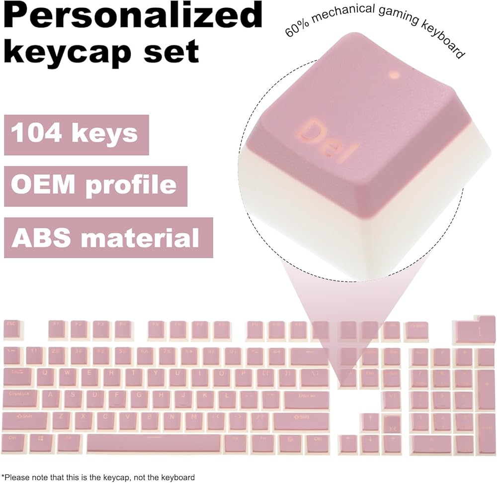 Personalized keycap set, is in size of : 104 keys, PBT material, OEM profile, for 60% mechanical gaming keyboard