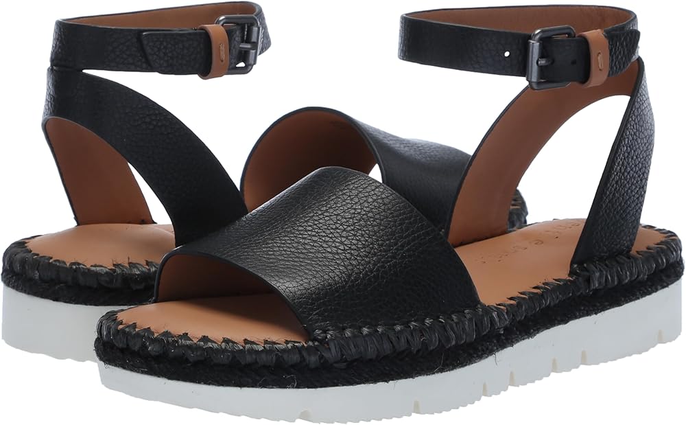 Gentle Souls by Kenneth Cole Lucille sandal. This white bottom sandal has an ankle strap with buckle closure. Poron technology memory foam insole for added comfort.