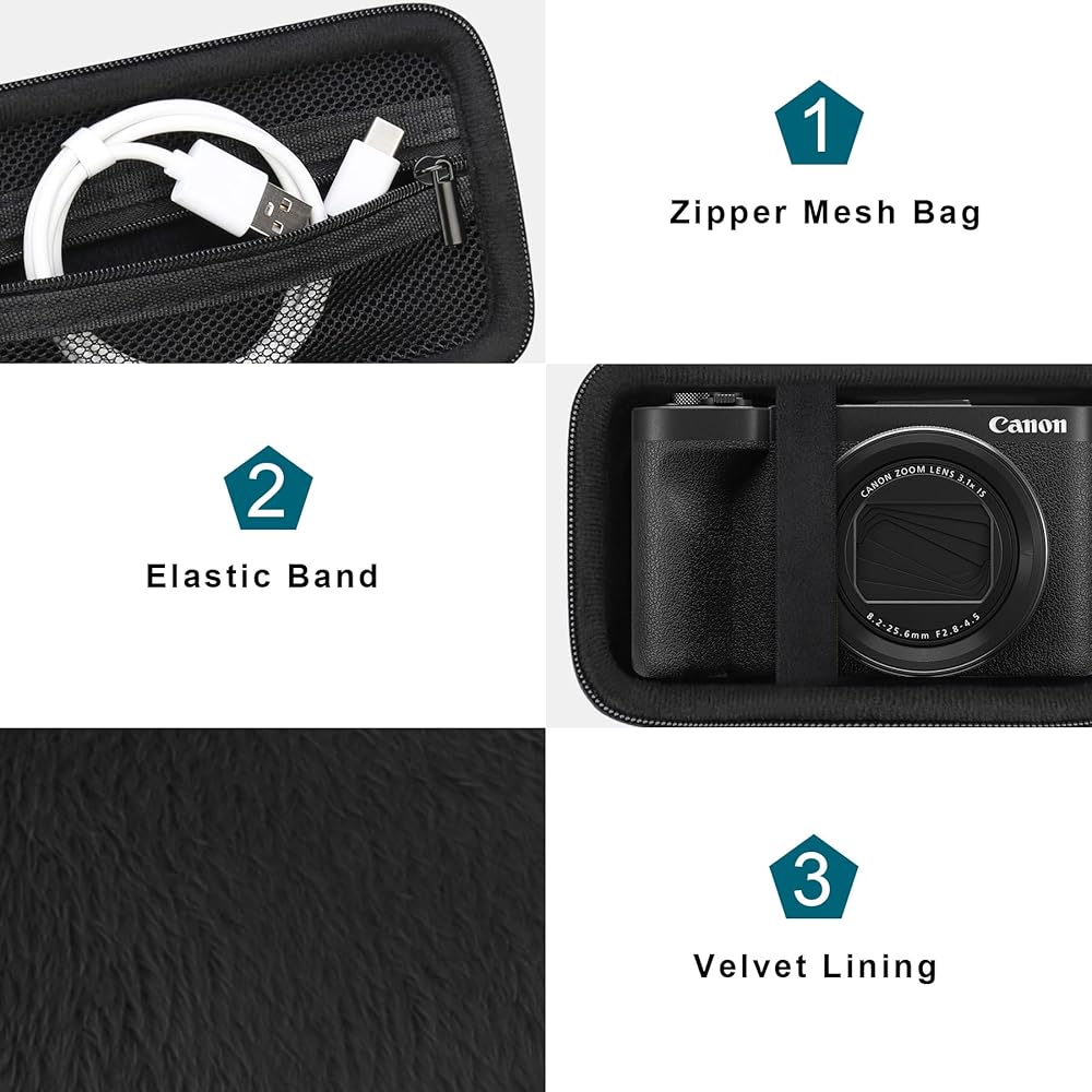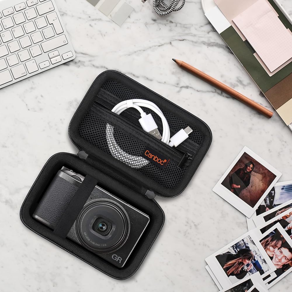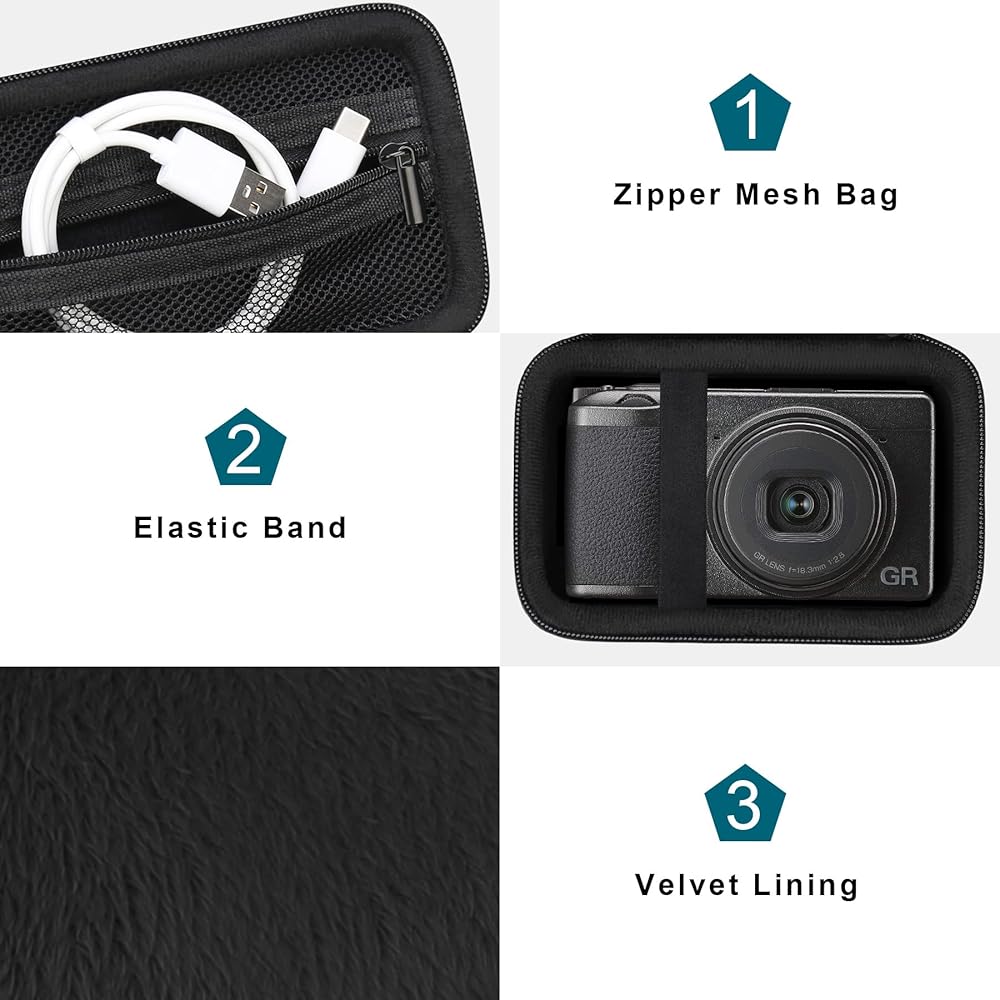 【Premium Material】 Ricoh GR III case made of scratch resistant fabric and high-quality durable EVA sturdy shell keeps your GR IIIx camera protected. Soft velvet interior lining keeps your point and shoot camera and small accessories free from scratches.