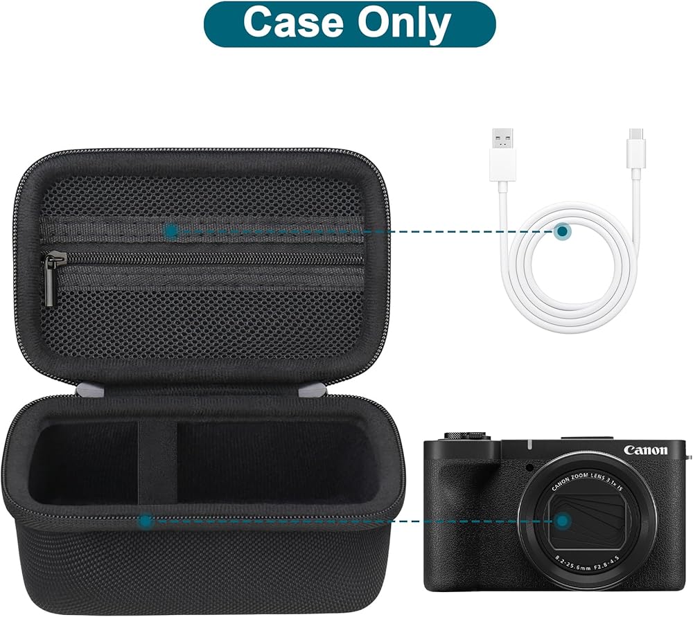 Canboc Case for Canon PowerShot V1/ RICOH GR IV Digital Camera, PowerShot V1 Point and Shoot 4K Video Vlogging Camera Bag, Mesh Pocket fits USB Cable, Black(Case Only)