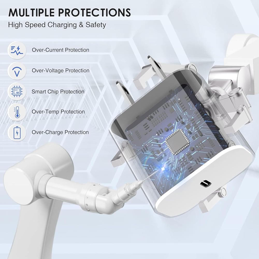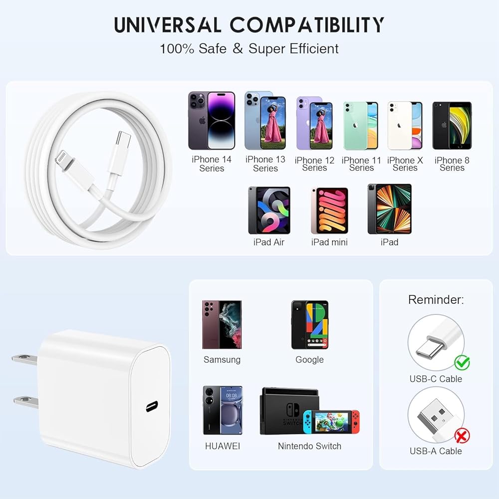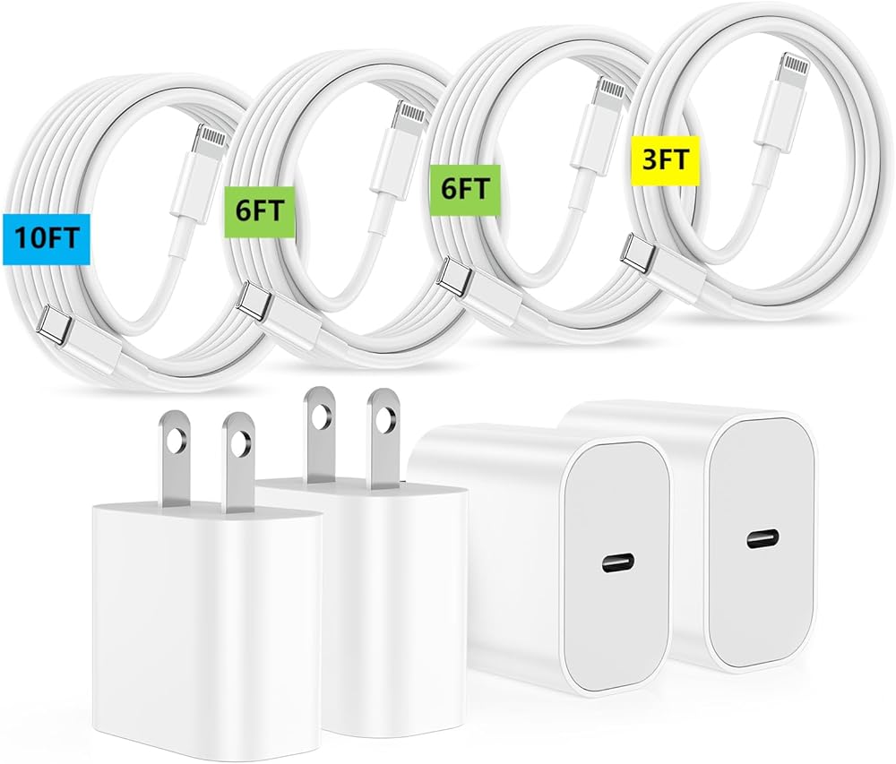 【Packing List】2 x 20W PD USB-C Wall Charger, (6ft+6ft+10ft) USB C to C Cable (60W). Believe that our products will bring you a pleasant experience, if you have any questions, don't hesitate to contact us. We promise to solve your problems within 24 Hours. (Contact Information: "Account Service"→"Order History"→"Contact Seller").