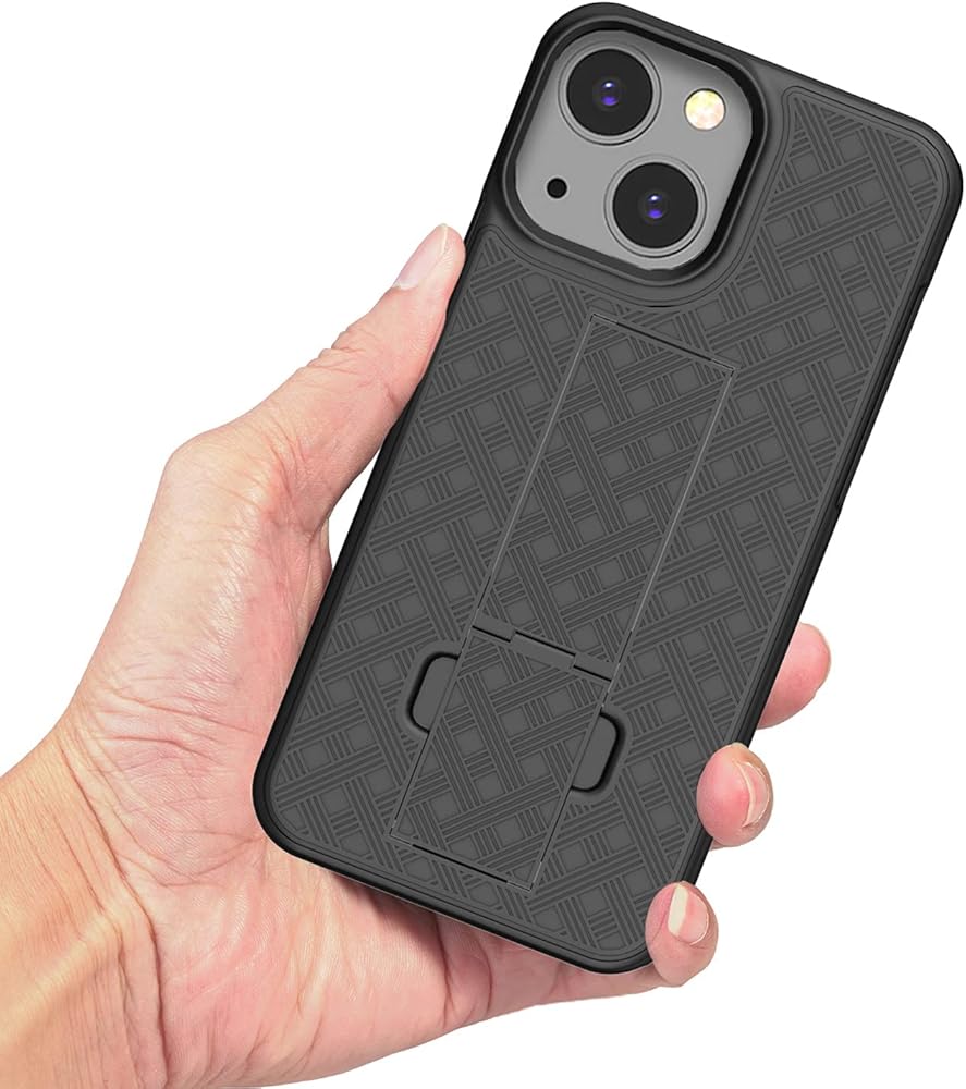 Apple iPhone 13 Mini Hybrid Combo Case: Precise cutouts allowing access to camera, home button, headphone jack, microphone etc, Great side grips and clip holds tight to clothing. The low profile keeps carrying the phone from feeling bulky.