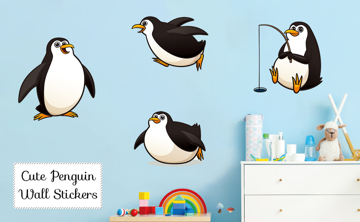 Premium Material: The cartoon cute penguins wall stickers made of high quality vinyl material, waterproof, bright colors and strong adhesions.