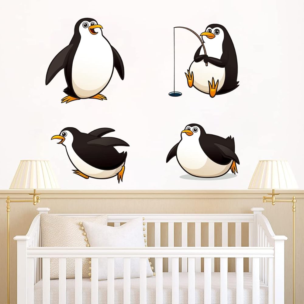 Package Included: You will get 4 sheets Wall Stickers which about 4 cute and funny penguins, Each sheet size is about 12 x 12inches, very easy to decorate your rooms. The penguin wall decals consist of adorable 4 different poses, penguin fishing, penguin running, penguin swimming, which can make children happy. You can DIY according to kids own preferences.