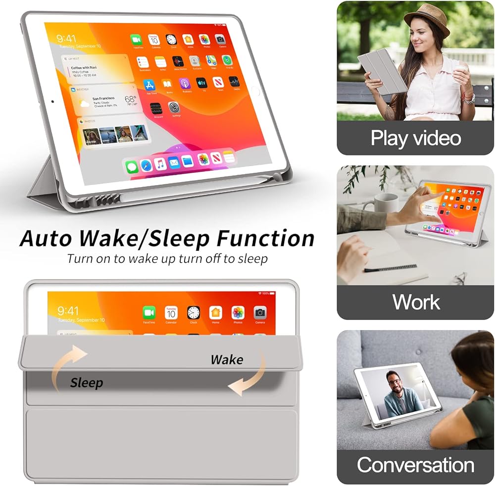 Aoub Case for iPad 6th Generation 2018/iPad 5th Generation 2017 9.7 inch, with Pencil Holder, Auto Sleep/Wake, Soft TPU Back Slim Lightweight Trifold Stand Smart Cover for iPad 9.7 6/5 Case- Grey