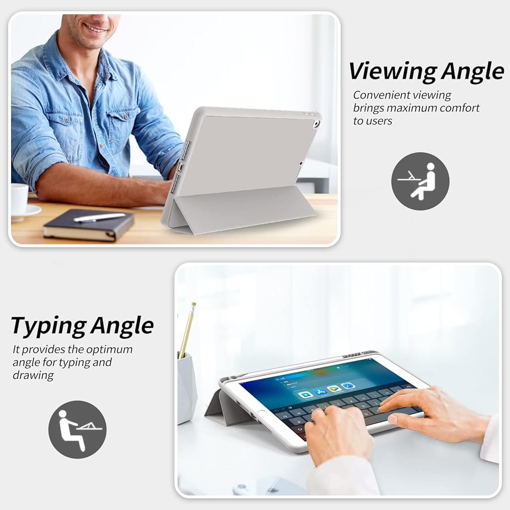 【Tri-fold Stand】The strong magnetic trifold stand design makes your iPad stand stable. You can easily prop up your iPad with standing position for enjoy the most comfortable 65° viewing mode & 30° typing mode.