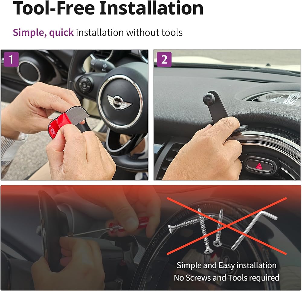 • [Optimized for MINIs] The phone holder for minis fits for MINI cars. It is designed in a small size to fit the unique design of MINIs curved surface, It matches well with NINIs design. (compatible with R56 & F56 & F55 & LCI & Electric Cooper SE Hatch/Hatchback, F54 Clubman, F60 Countryman)