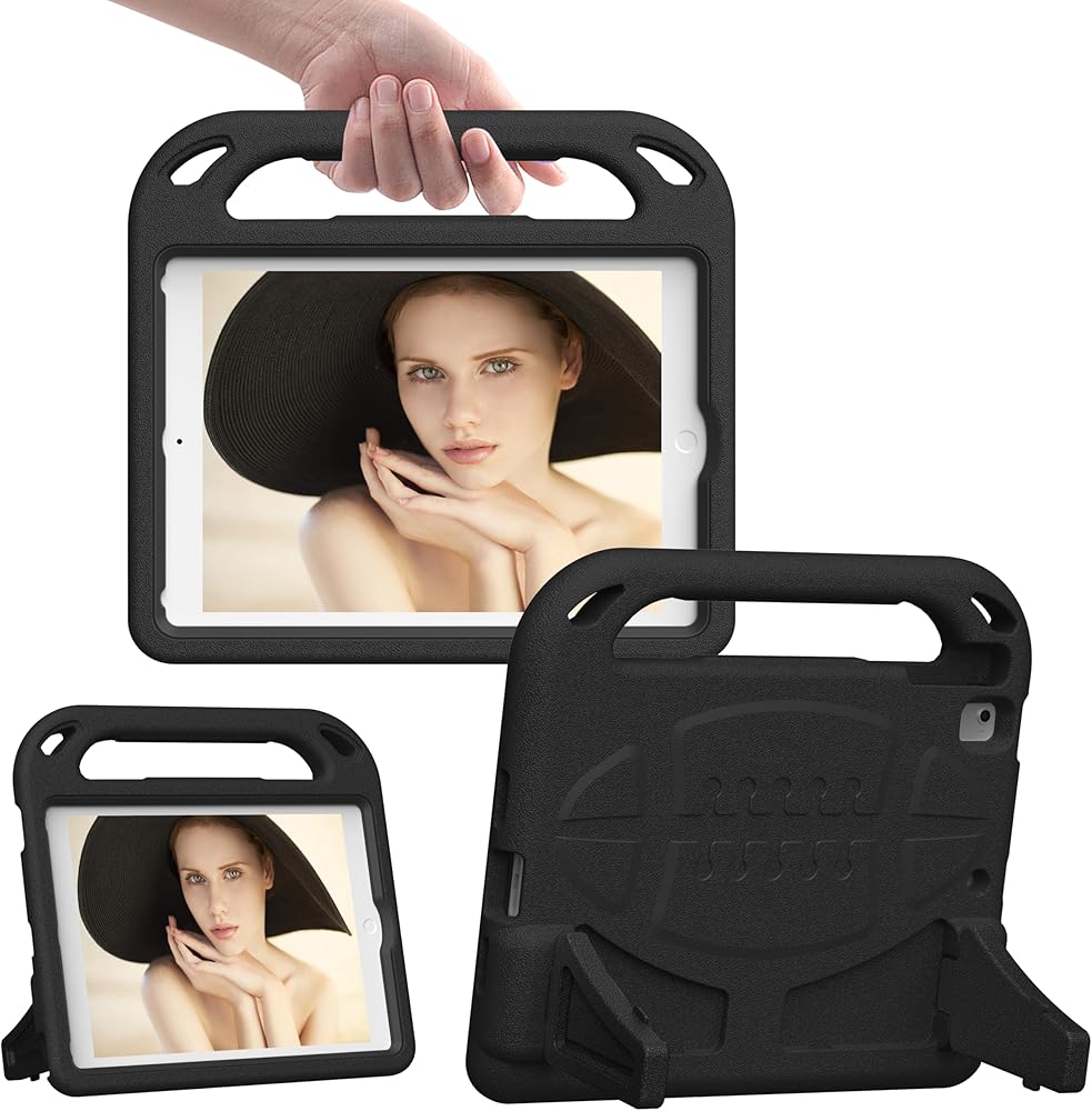 Case for iPad 6th/5th Generation (iPad 9.7 inch,2017/2018), iPad Air 1& Air 2 & Pro 9.7 Case with Stable Stand, Durable Shockproof Protective Cover for Kids- Black