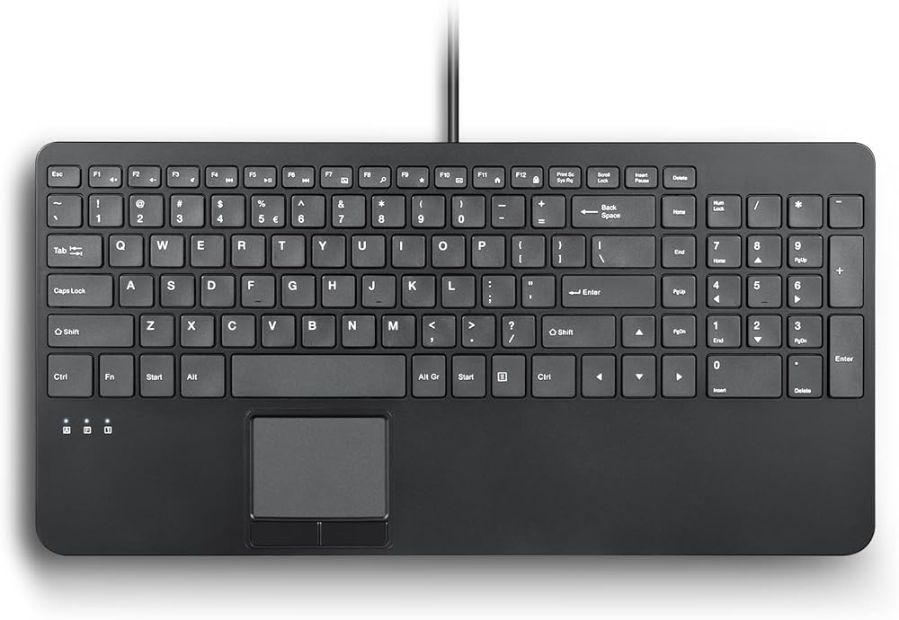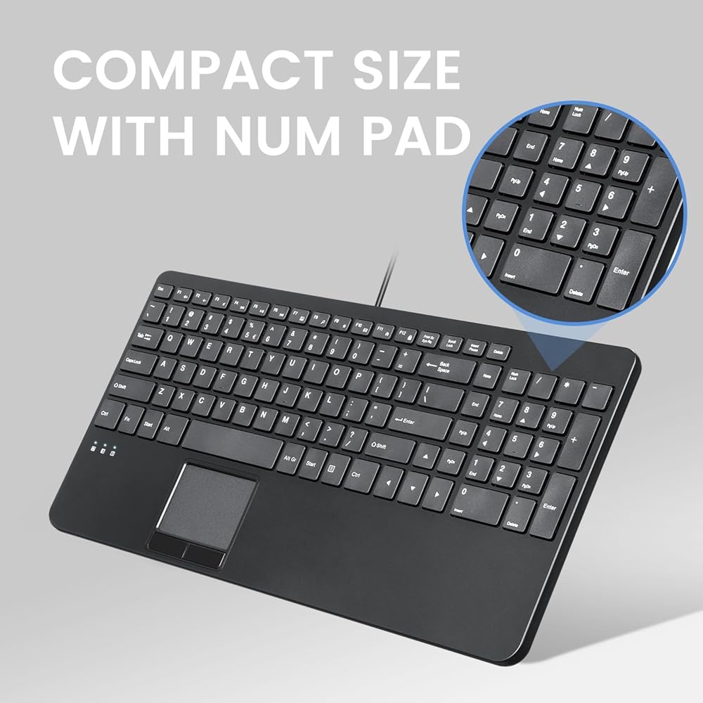 Wired compact keyboard with touchpad fit for various industrial and professional use; Keyboard Dimension: 15.63 x 7.80 x 1.18 inches (397x198x30mm) with 5.90 feet (1.8 m) cable