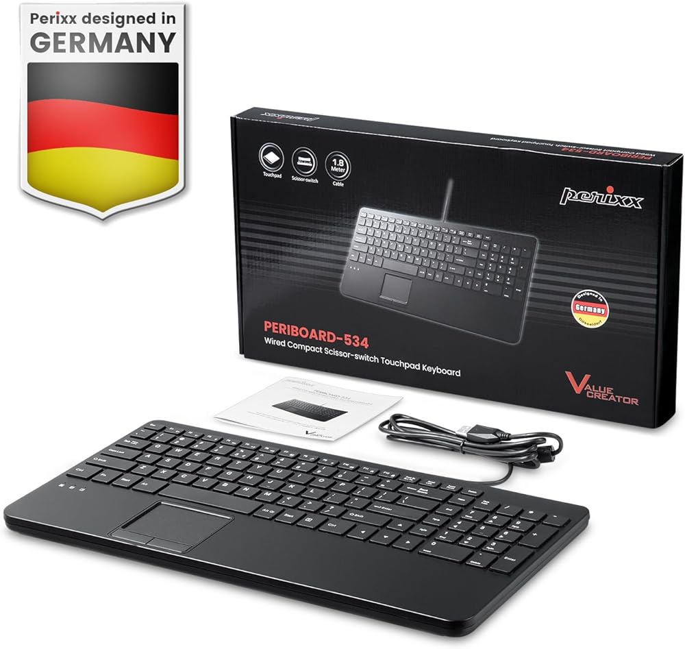 Perixx PERIBOARD-534 is a compact keyboard with a touchpad and a number pad. The keyboard features a low-profile scissor-switch that gives silent and accurate typing. Two additional USB ports on the left side of the keyboard to connect low-powered USB devices such as computer mice, flash drives, and more.
