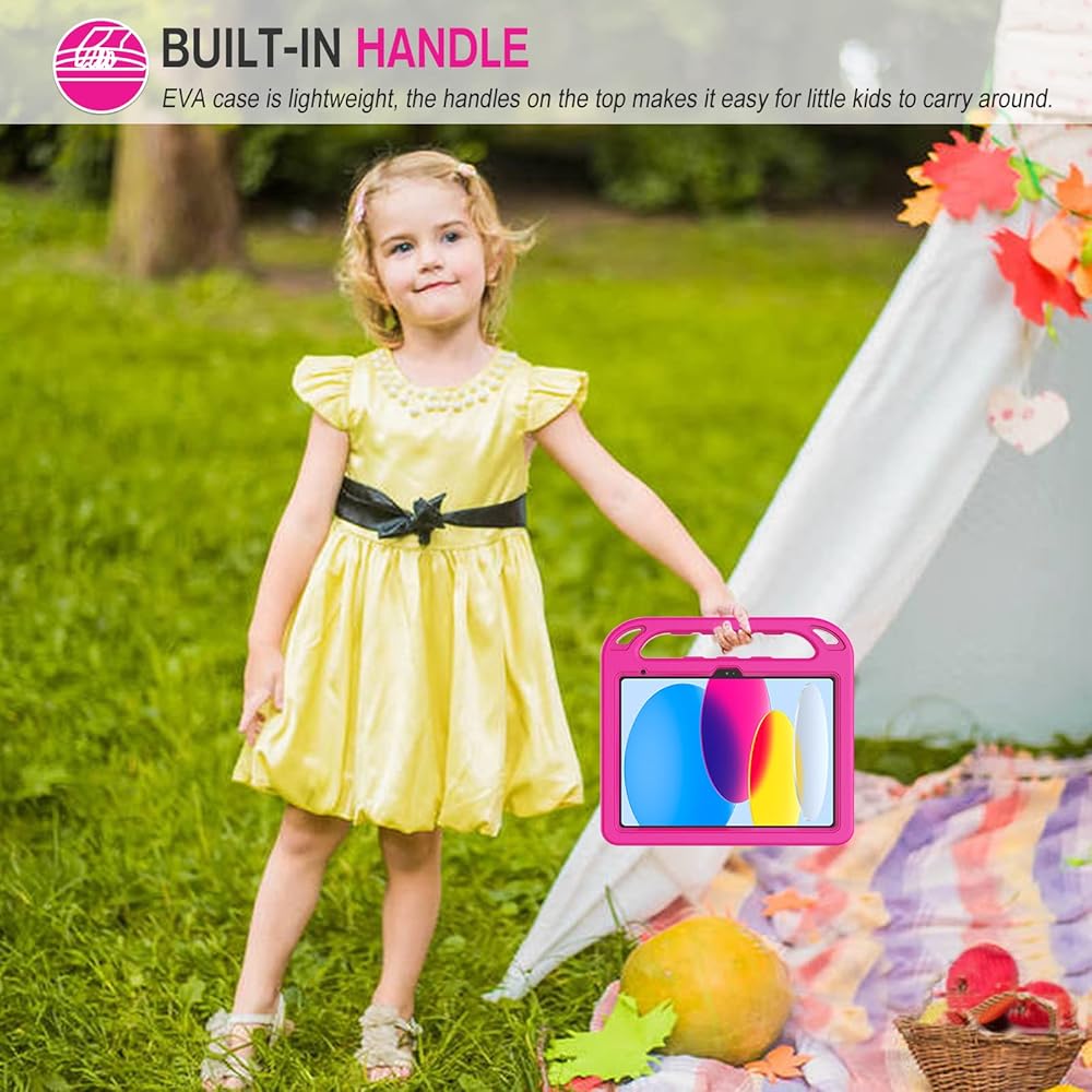 iPad 10th Generation Case for Kids, iPad 10.9 Inch Case with Built-in Screen Protector, Durable Lightweight Shockproof Handle Stand Child Cover Case for iPad 10th Gen 2022 Release - Rose