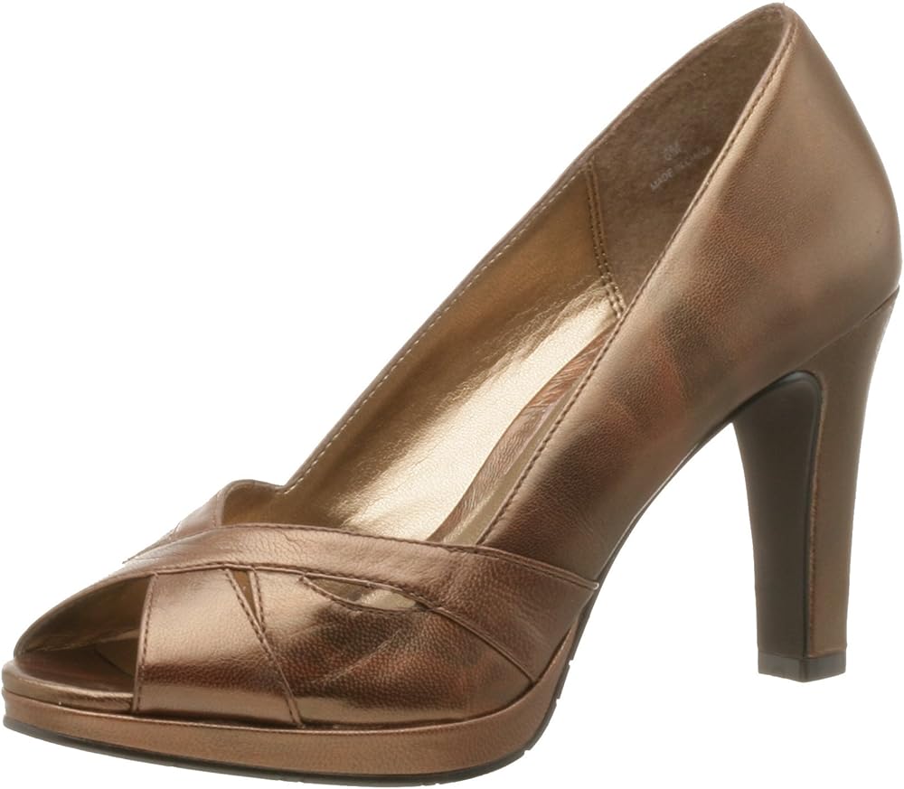 Walk with confidence in this sexy but sturdy platform pump from Moda Spana. With its stylish cutouts, 3½ inch heel and peep toe, the shiny pump in leather or suede pairs perfectly with all of fall's sophisticated fashions.