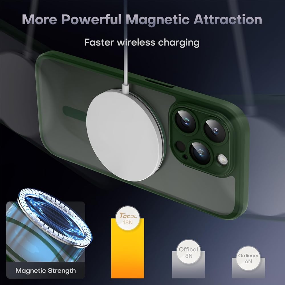 TOCOL Magnetic for iPhone 13 Pro Max Case Upgraded Full Camera Protection Compatible with Magsafe Drop Protection Translucent Matte Back Phone Cover 6.7-Inch, (Alpine Green)