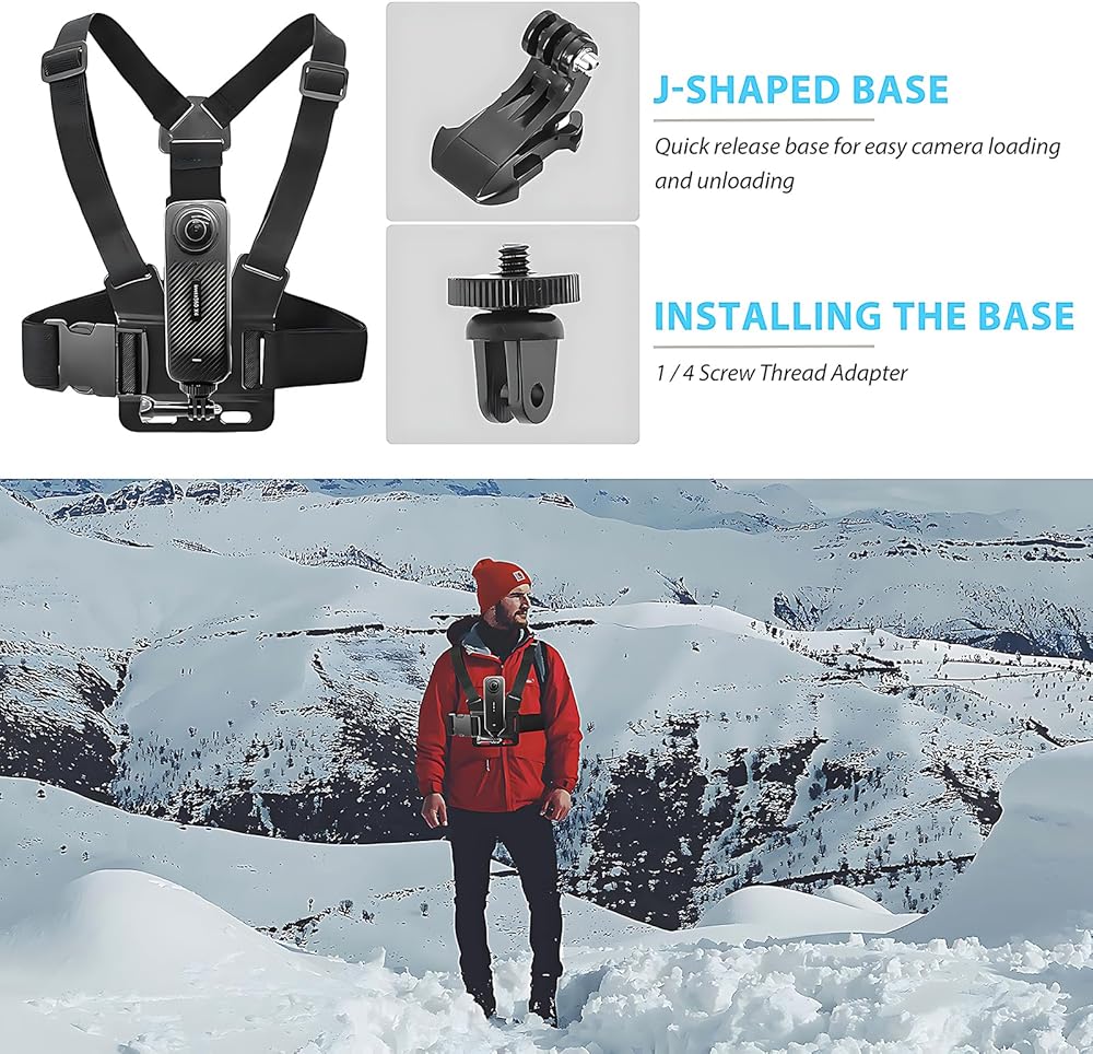 Adjustable Chest Mount Harness for Insta360 X4 X3 X2 X ACE Pro ONE RS R GO 2 3, Chest Strap Body Mount Accessories Compatible with Gopro Hero Series and DJI Osmo Action 2 3 4 Cameras Attachments
