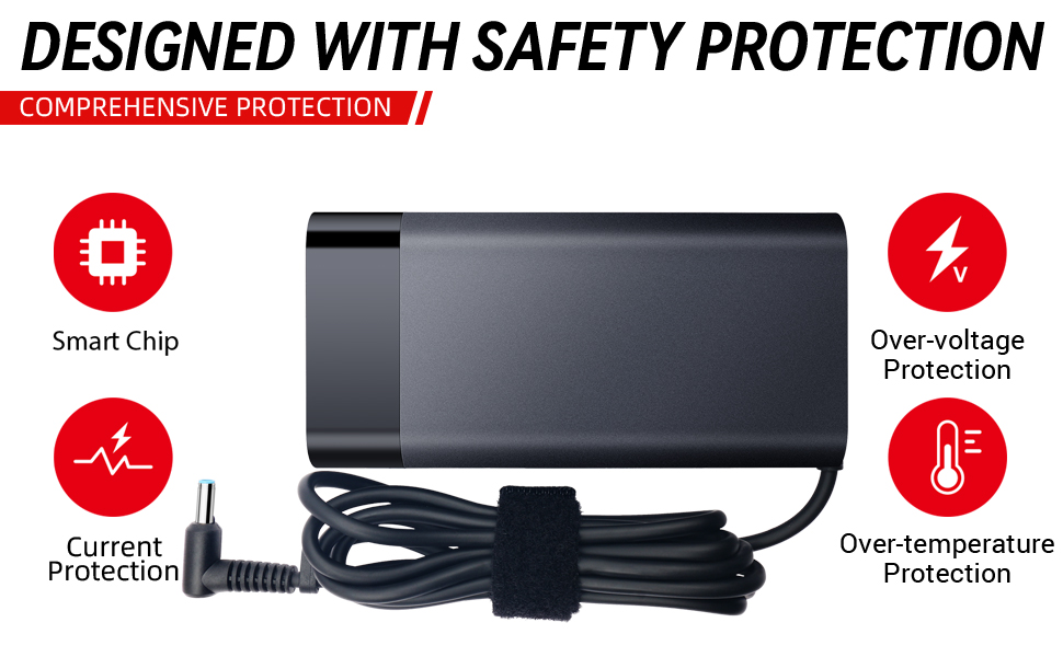 ✅شحن آمن بنسبة 100% - يوفر شاحن الكمبيوتر المحمول بقوة 150 واط من HP شحنًا آمنًا وسريعًا وفعالاً لجهاز الكمبيوتر المحمول الخاص بك. توفر الدائرة الذكية داخل المحول طبقات متعددة من الحماية لبطاريتك (الشحن الزائد، الدائرة القصيرة، درجة الحرارة المرتفعة، الحماية من زيادة التيار). يعمل على تحسين كفاءة الشحن بشكل فعال ويوفر طاقة احتياطية كافية لاستخدام الجهاز لفترة طويلة. يتوقف الشحن تلقائيًا عندما يتم شحن الكمبيوتر المحمول بالكامل