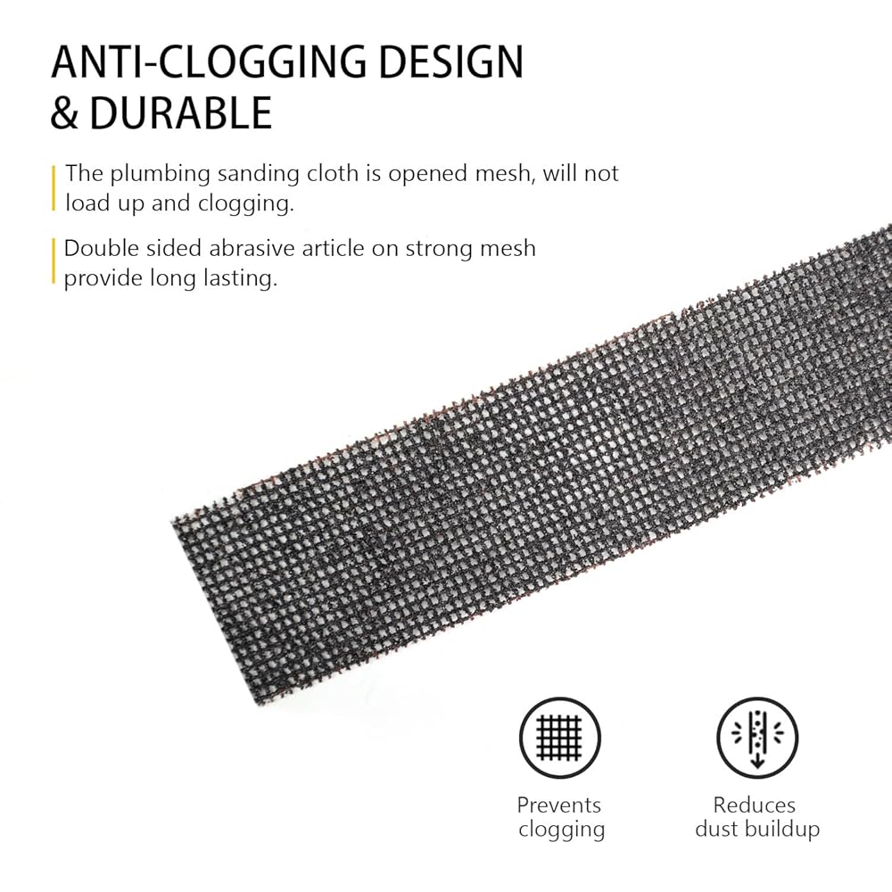 【Advantage】The plumbing sanding cloth is opened mesh, will not load up and clogging; double sided abrasive article on strong mesh provide long lasting; roll size allow flexible cut for multi demand; waterproof and washable ensure reuse, can work in dry and wet condition.