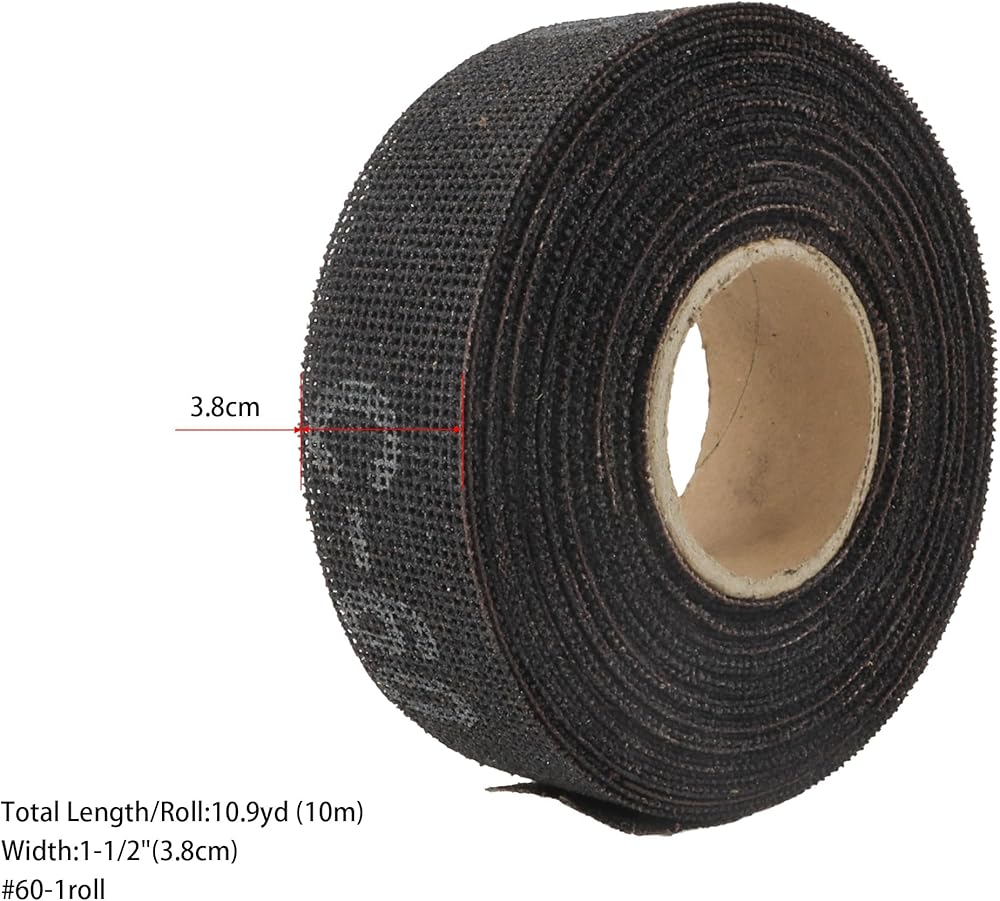 【Dimension】1-1/2" x 11 yd (3.8cm x 10m) / roll. Grit: #60. Package: 1roll(33 ft ).