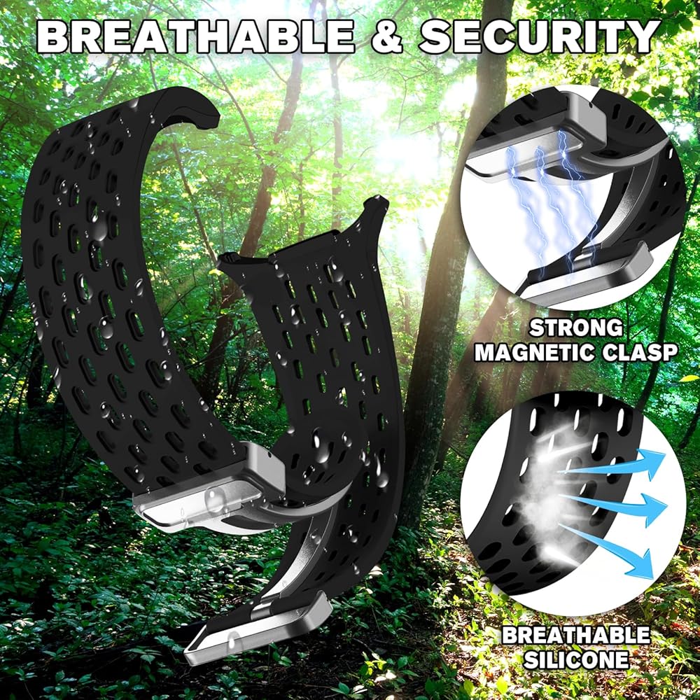【Magnetic Metal Clasp】: This magnetic clasp made of high-quality metal material,with texture, more convenient to wear than the bow buckle, comfortable and flexible. The band combined design of folding buckle & silicone strap together, providing a new way to enjoy silicone sport bands and the snap-to-wear.