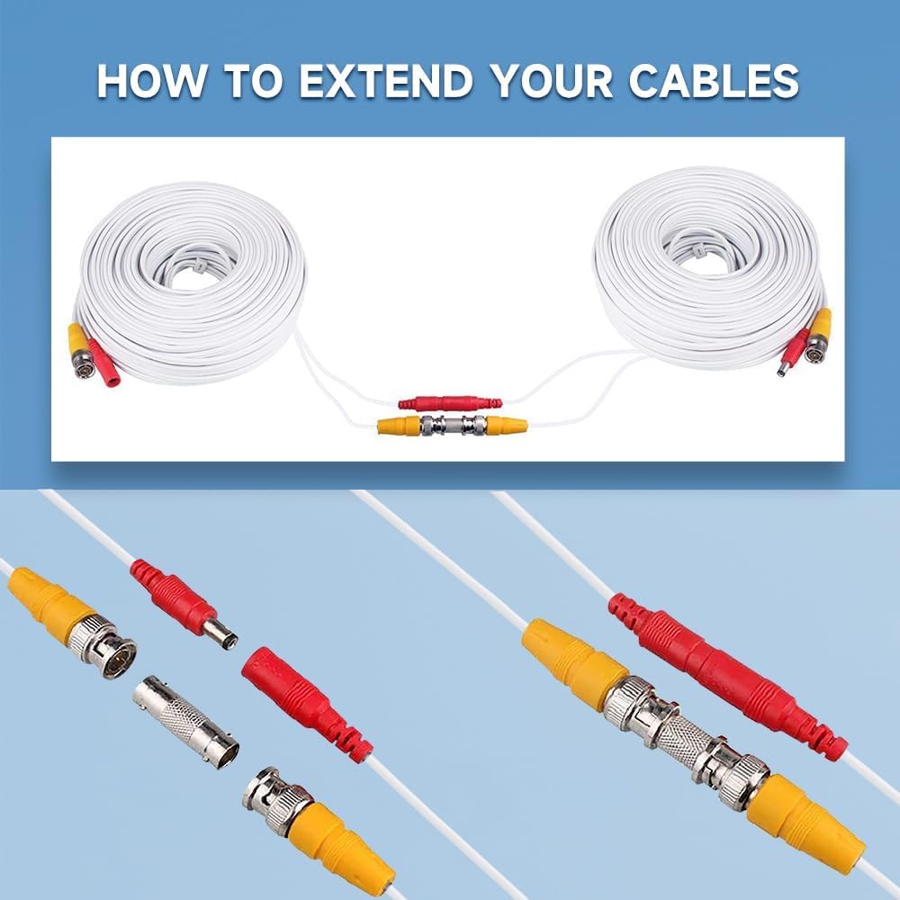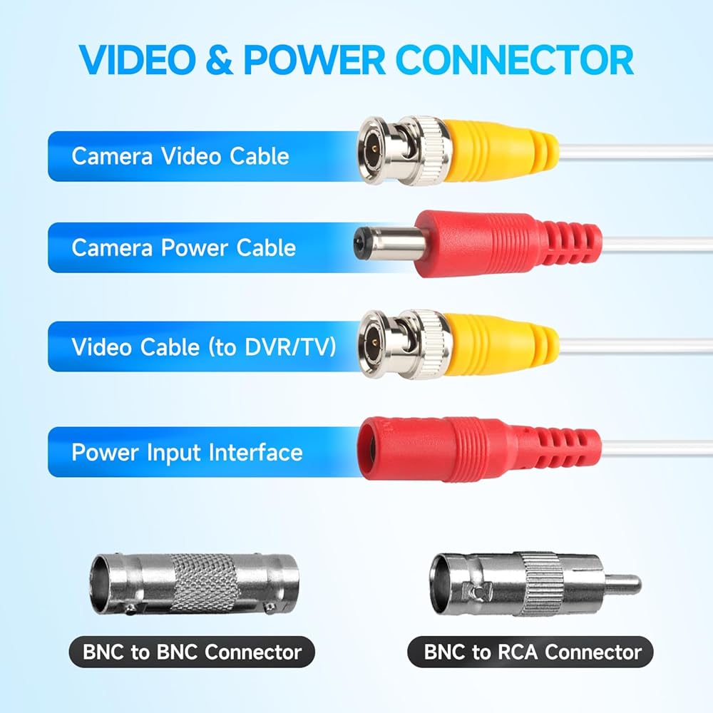【Flexible to Install & Weatherproof】The 2-in-1 BNC cable is plug-and-play and well adaptive to various application scenarios like the surface and inside of walls, floors, etc. Built with PVC-45P molding, it is weatherproof and flexible for both indoor and outdoor use. Package includes BNC to RCA and BNC to BNC Female connectors to extend cable length.