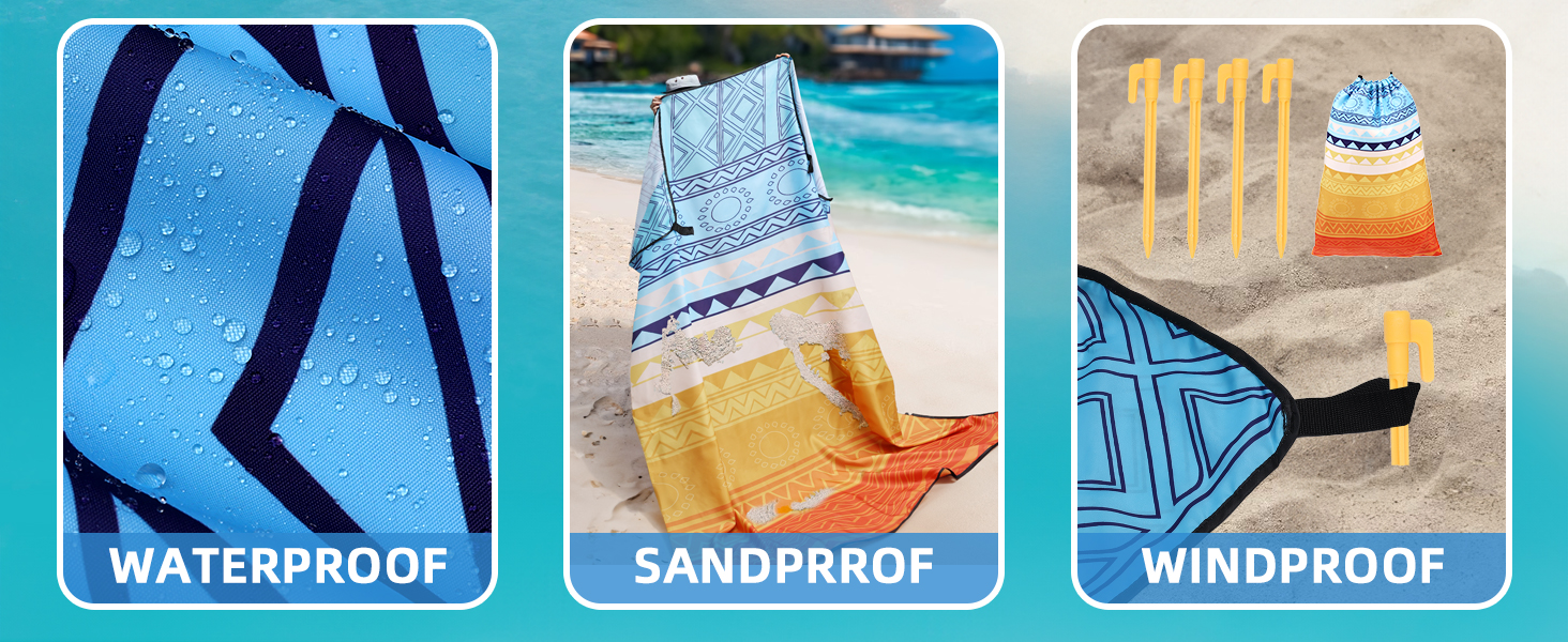 Sandproof & Maintain: Our beach mat is crafted from materials that are easy to clean and maintain. Whether it's sand, seawater, or mud, a simple wash will do the trick, keeping it looking great and hygienic for years to come, saving you time and effort.