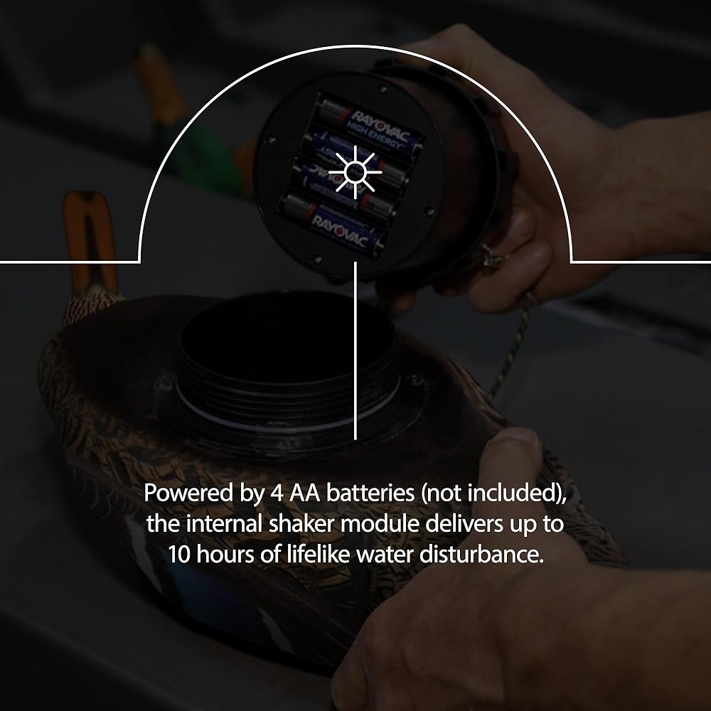 PATENT PENDING DESIGN - This hunting decoy features a Shaker module which will save the hunt on no-wind days; This waterfowl decoy creates a wake in spread that ultimately makes adjacent decoys move as well; It makes your entire decoy spread come alive