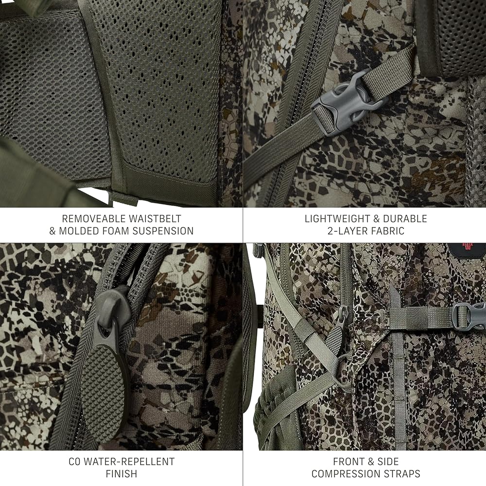 Comfortable Design: Features a molded foam suspension for comfort during extended wear, suitable for men's backpacks and designed for hunting gear for men