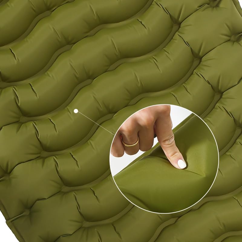 Enlarged and thickened air Sleeping Mats for camping (78.75 x 27.55 X 3.93 inches), 330lbs load capacity, quick inflation in 25 seconds at maximum speed, low noise, TPU coated(Military Green)