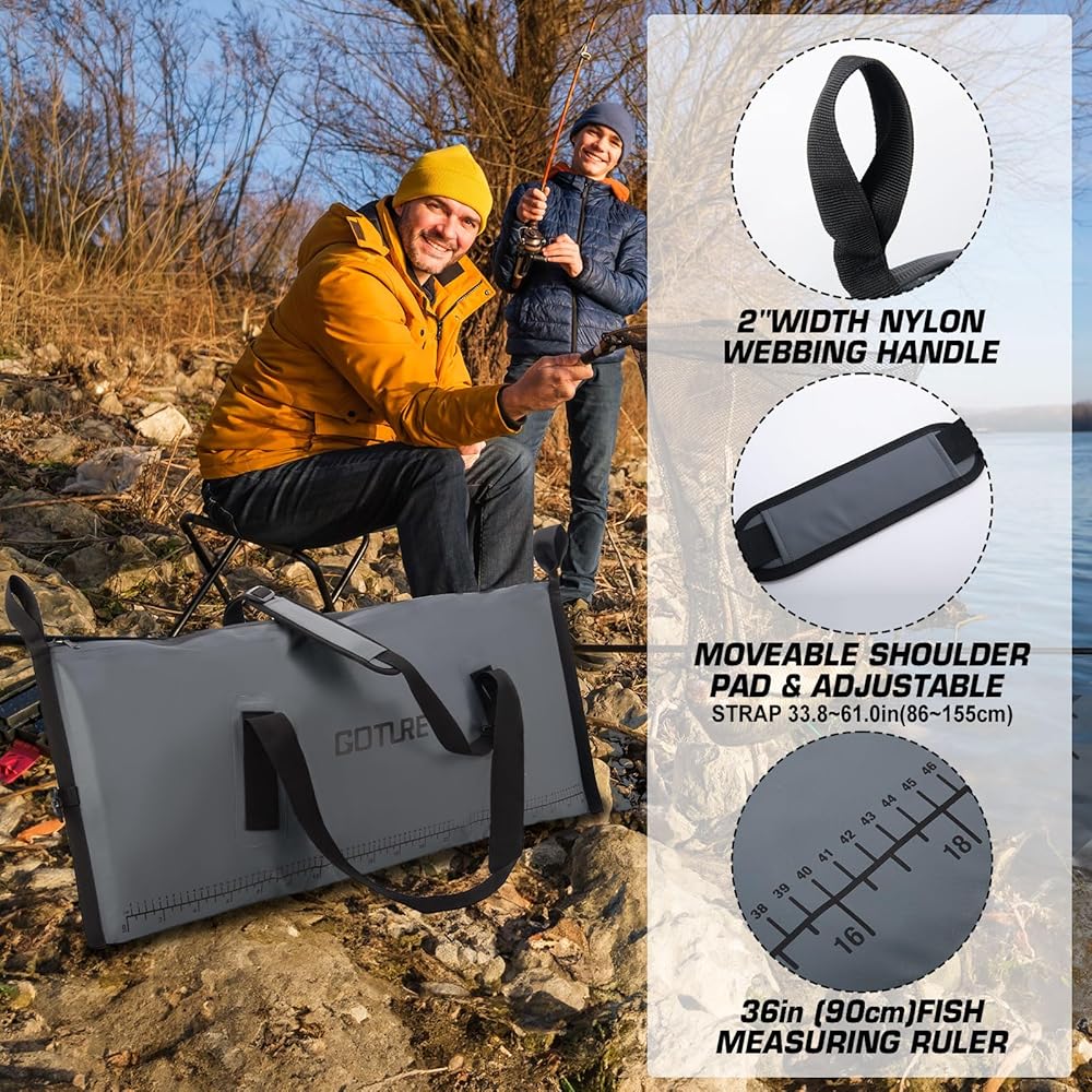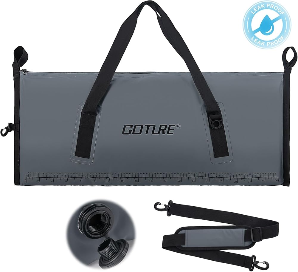 Goture Insulated Fish Cooler Bag, 500D PVC Leakproof Fishing Kill Bag, Waterproof Fish Bags with Carry Handle and Strap, Large Fishing Cooler Bags with Drain Plug, 59.84"x 20.08"x 9.06"
