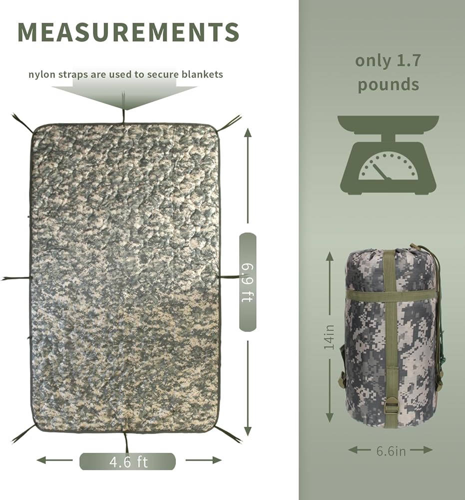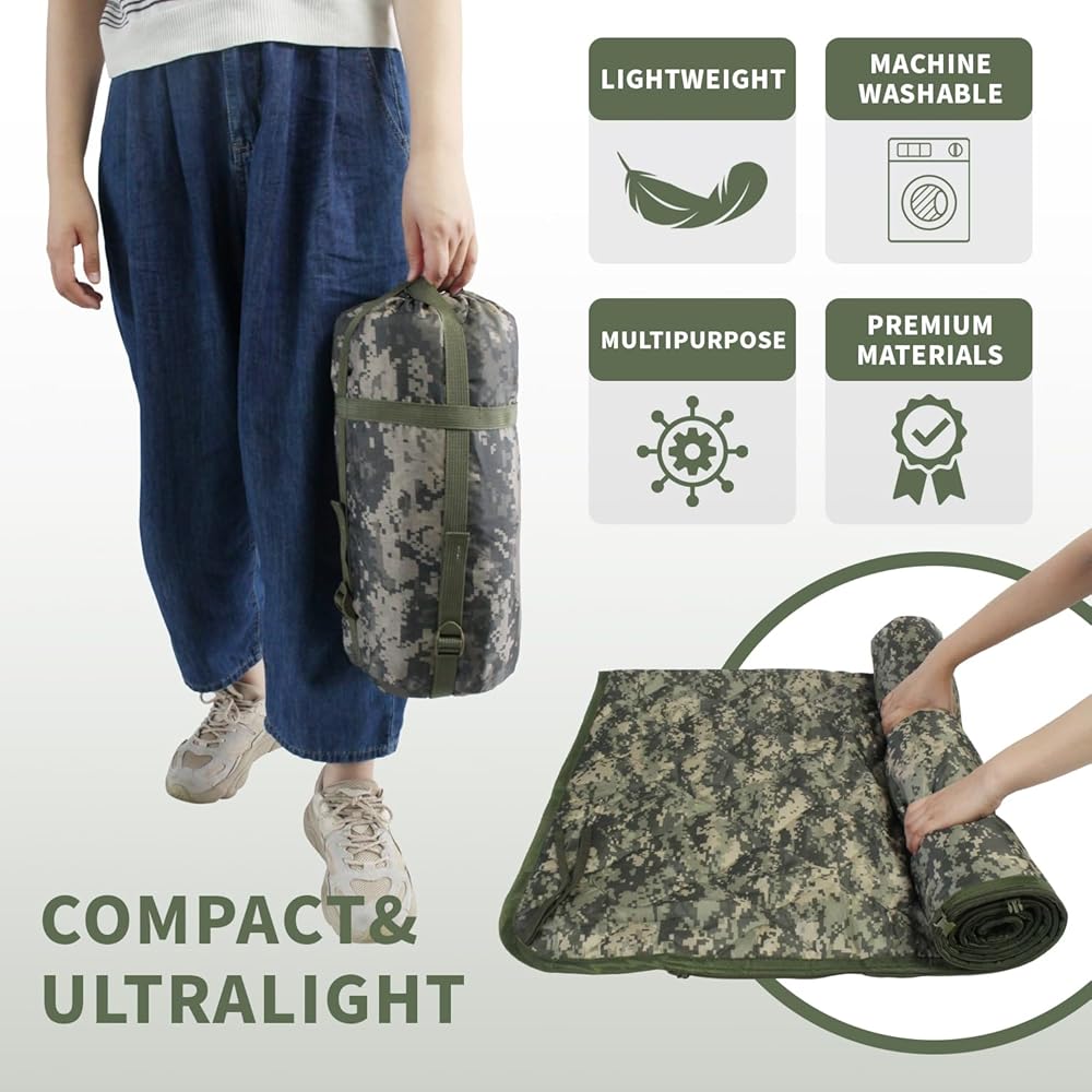 Multi-Purpose: Use as beach blanket, stadium blanket, make-shift survival shelter, sun canopy, pillow, tent divider, privacy screen, seat cover, concealment blind, backpacking blanket, sleeping bag or tent insulator, and much more.