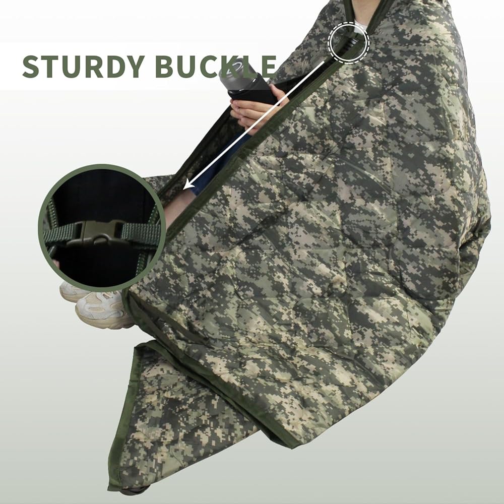 Great Design: Features 8 pairs of tie cords attached around edges with reinforced bar-tack stitching, which can be tied to any position that needs to be fixed. The sturdy buckle can easily turn your blanket into a poncho. The zipper makes it warmer when used as a sleeping bag.