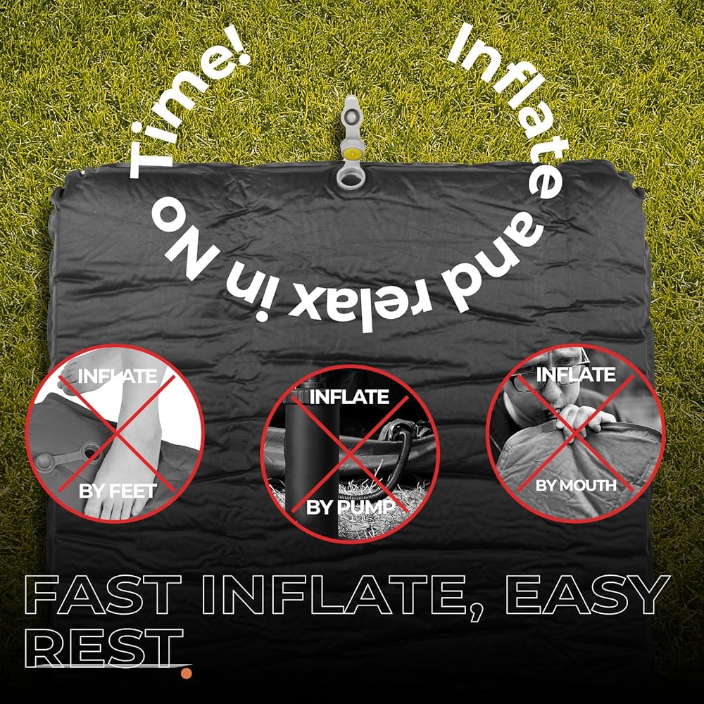 نفخ ذاتي سريع: نظرًا لتصميم الصمام المزدوج والإسفنج عالي المرونة، فقط افتح كلا الصمامين للسماح لوسادة النوم بالنفخ والتفريغ بسرعة من تلقاء نفسها، قم بلف وسادة النوم بسهولة إلى حجم صغير وتخزينها في العبوة المتضمنة. حمل الحقيبة. 𝐍𝐎𝐓𝐄: 𝐃𝐮𝐞 𝐭𝐨 𝐯𝐚𝐜𝐮𝐮𝐦 𝐩𝐚𝐜𝐤𝐚𝐠𝐢𝐧𝐠, 𝐟𝐢𝐫𝐬 𝐭 𝐢𝐧𝐟𝐥𝐚𝐭𝐢𝐨𝐧 𝐦𝐚𝐲 𝐭𝐚𝐤𝐞 𝐬𝐨𝐦𝐞 𝐭𝐢𝐦𝐞.