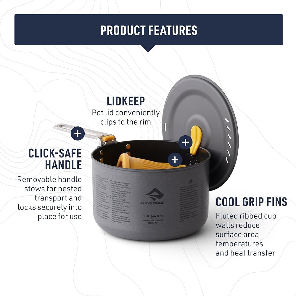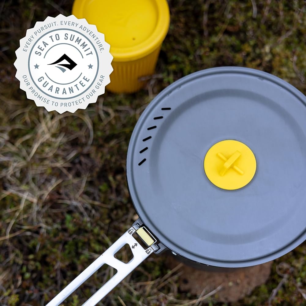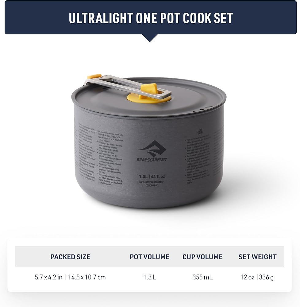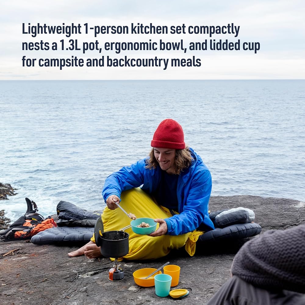 The Frontier Ultralight One Pot Cook Set includes a 2 Liter Frontier Pot teamed with our ergonomic Passage Collection bowls and cups to form the base of the best lightweight camp kitchen setup available. The 2 Liter Frontier pot uses the highest quality hard-anodized aluminum alloy for efficient heat transfer and a ceramic non-stick coating, clever strainer holes in the pot lid, and a LidKeep that allows you to clip the lid to the side of the pot. A Click-Safe handle provides a solid grip that can be reversed to hold the entire cook set in place. Also includes EU food-grade bowls and cups that deliver the ultra durable dinnerware to stand up to any adventure.
