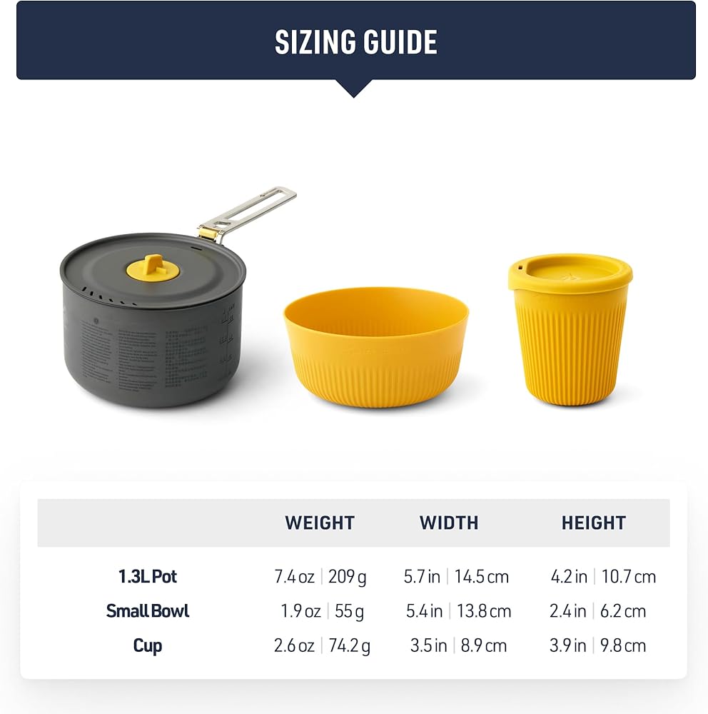 Camping cook set for two includes a 2-Liter Frontier Pot, 2 Medium Passage Bowls, and 2 Passage Cups
