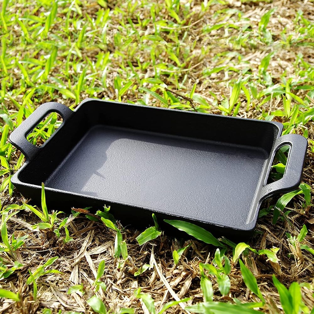 Bestargot Cast Iron Grill Griddle, 10 inch Grill Pot Perfect for Gas Grills and Stove Tops, Rectangular Baking Flat and Ribbed Griddle Plate