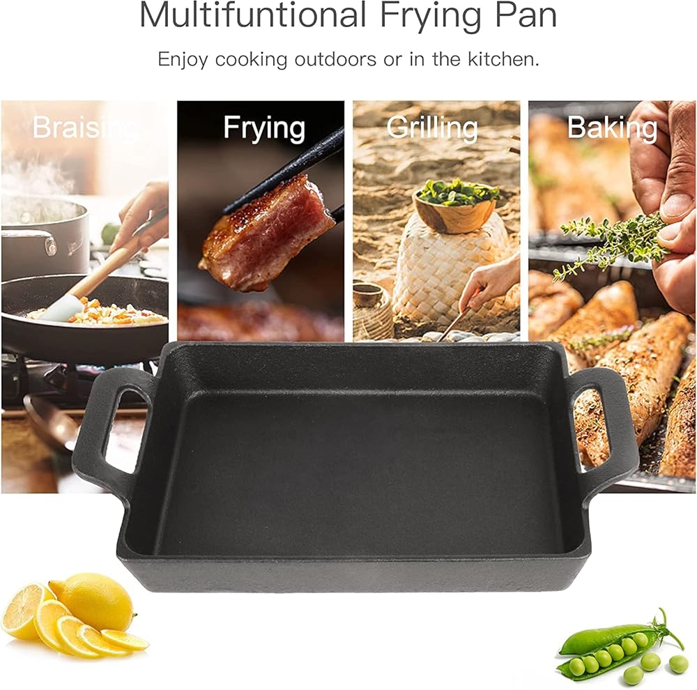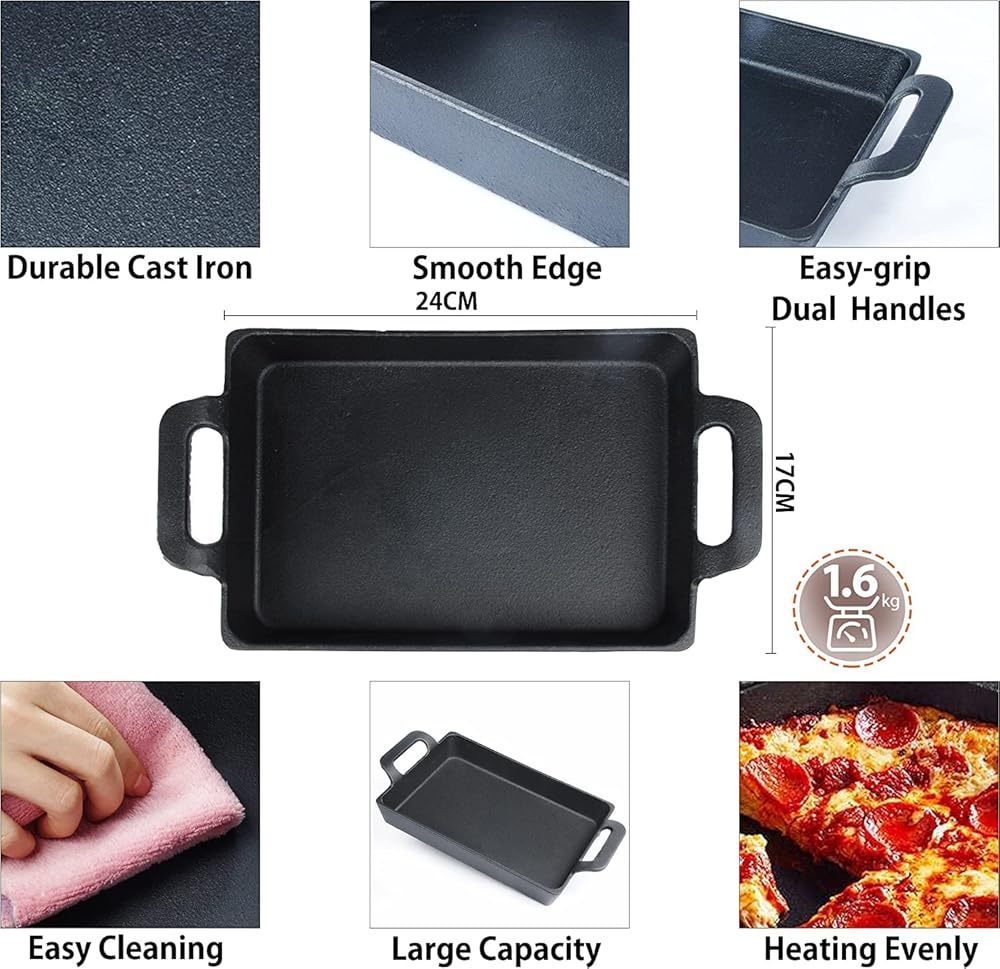 Superior Quality: Made of heavy durability cast iron with matte coating to ensure long-lasting use. Easy-grip handles for easier grip with pot holders. better bearing capacity, can hold heavy food. Excellent distribute heat evenly and nicely heat retention, maintain the original flavor of food