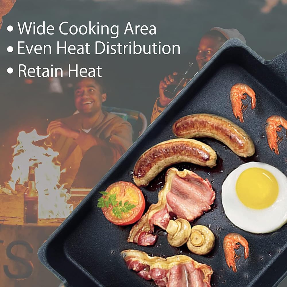 Reversible Design: One baking pan, both sides can be cooked, the ribbed side is used for grilled foods, such as steaks, lamb chops, fish and chicken; the flat side is used for pan cakes, toast bread, hamburgers, tortillas, fajitas, eggs, bacon, hot dogs, luncheon meat, minced meat, scallops, shrimps, veggies. Versatile and multipurpose grill pan perfect for indoor or outdoor BBQ, you can prepare food for family and friends wherever you go, enjoy different styles of delicious and frying fun