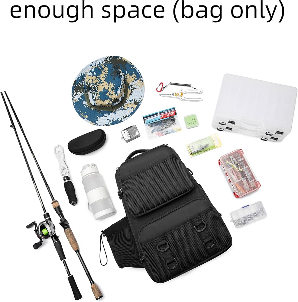Rabjen Fishing Backpack Tackle Sling Bag – Lightweight Tactical Storage Sling Fishing Bag for Fishing Hiking Hunting
