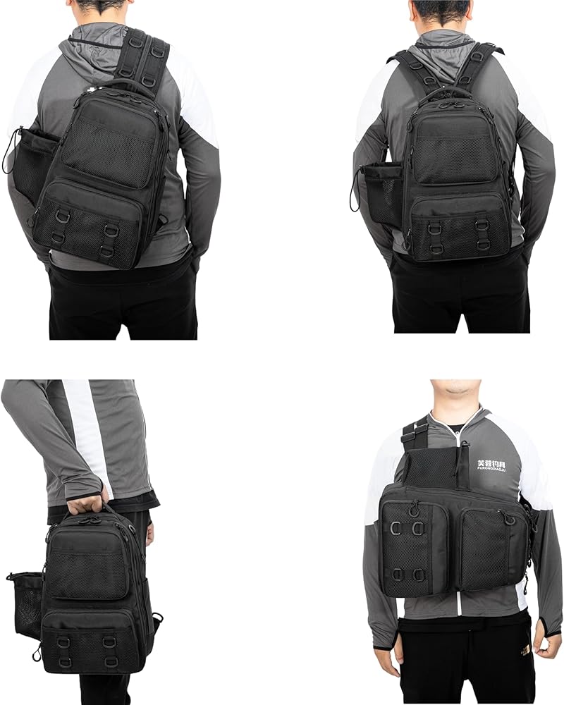 Multi use way: Padded back pad and shoulder strap reduces fatigue during a long day of fishing or hiking. Adjust the strap length and lower mounting point to the right or left side based on your preference. You can choose the bag as a backpack or a sling bag through the zipper, or hide the strap in the back pocket, use the top handle to carry the bag. (900D nylon)