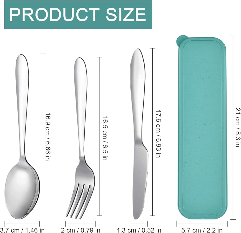 Package Include:1 x dinner knife,1 x dinner fork, 1 x dinner spoon, plus 1 x travel flatware carrying case