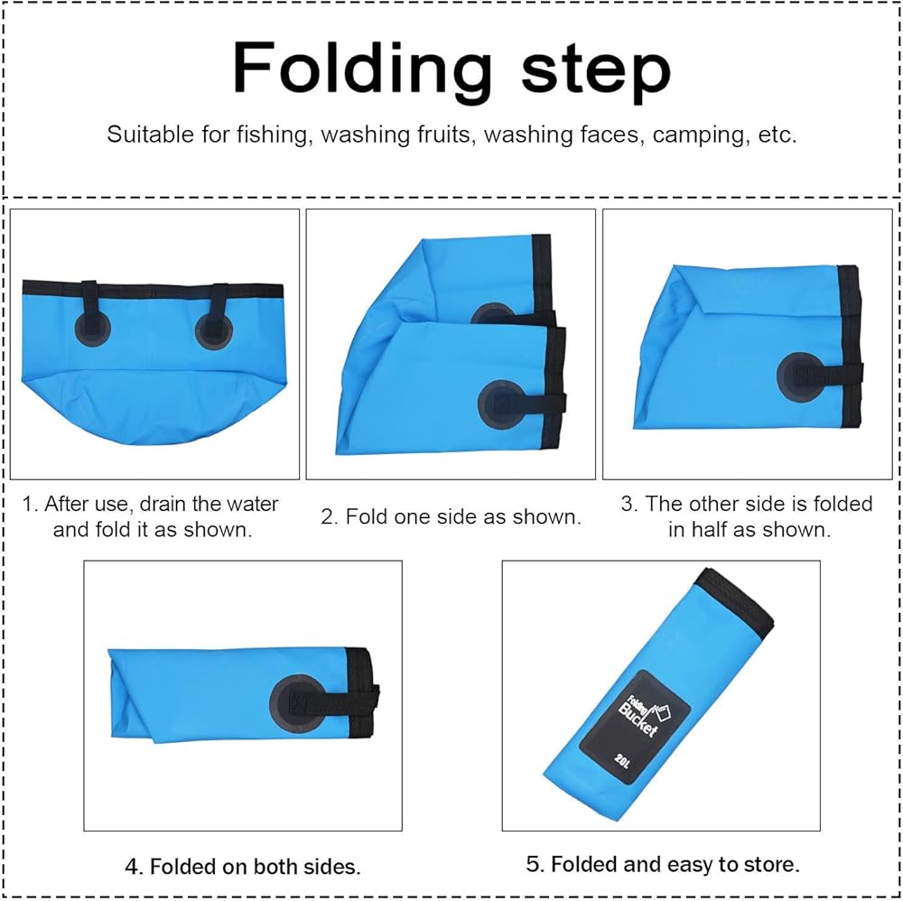 • ☺【Multi-functional fold bucket】: This Blue collapsible bucket is ideal to use for a range of tasks. It is suitable to use for an RV, camping, fishing, boating and more.