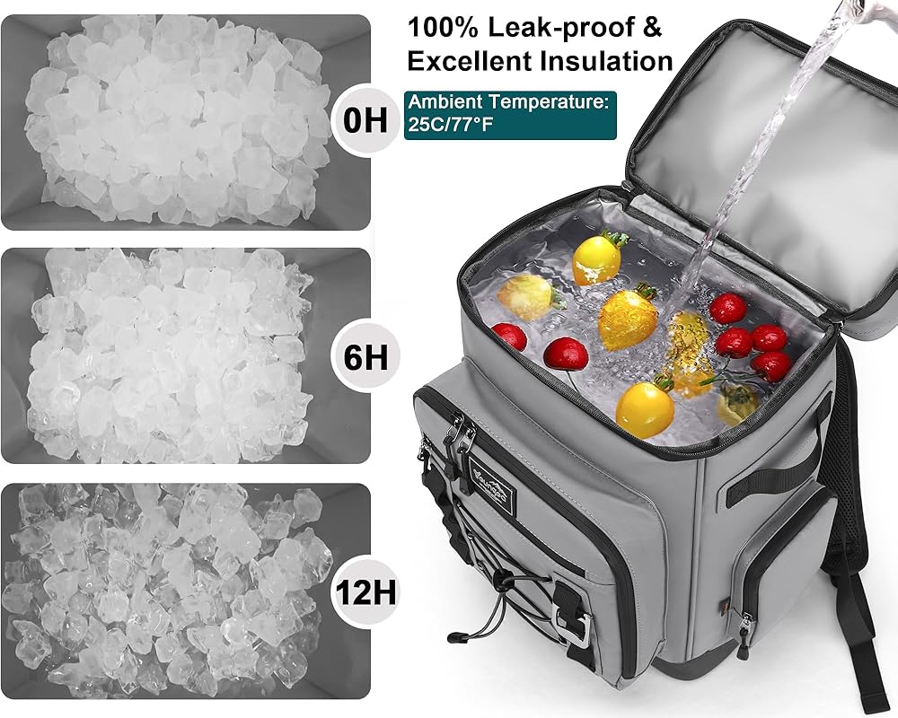 Seamless Leak-proof Design: Utilizing cutting-edge, seamless hot pressing technology, our cooler backpack is completely leak-proof, ensuring your belongings stay dry at all times. We stand behind our quality with a commitment to provide free replacement or return in the unlikely event of leakage. The smooth, horizontal zippers further enhance the anti-leak features for worry-free use.