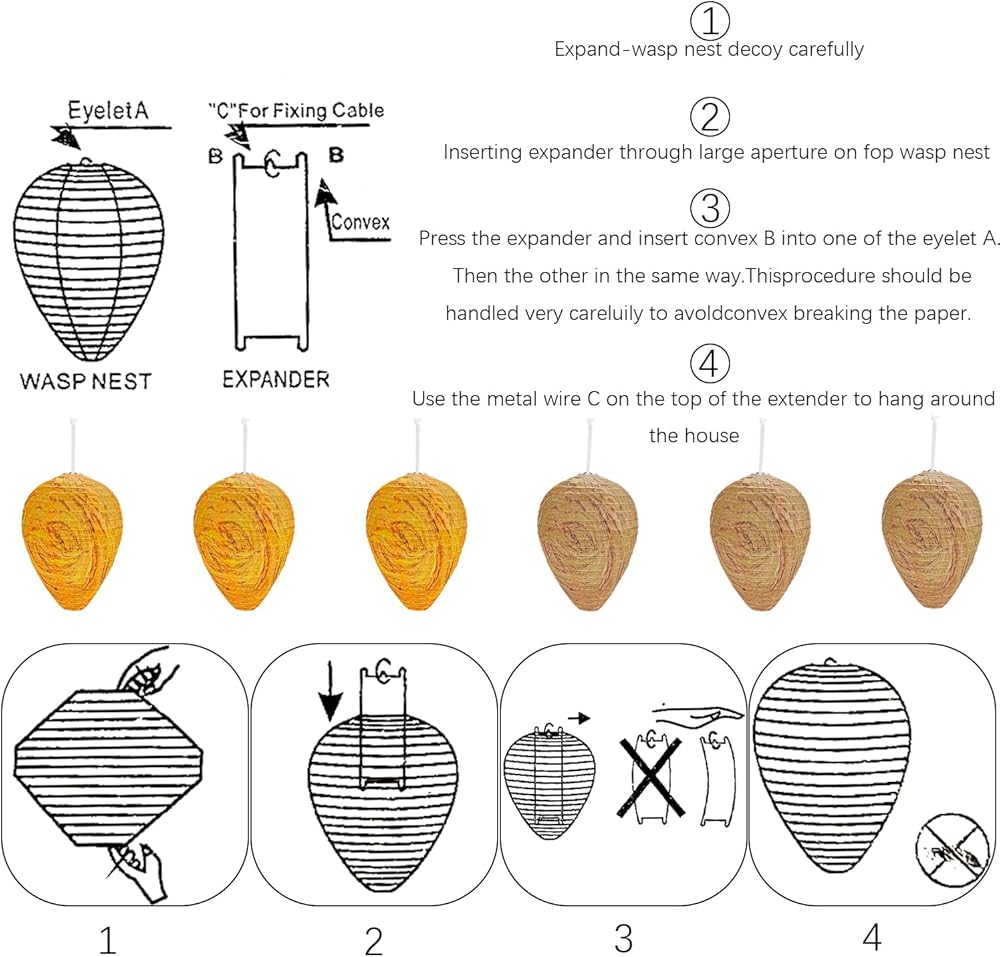 4 Pack Waterproof Nest Decoy Paper Hanging Fake Nest for Outdoor Hanging 2 Color Specifications: