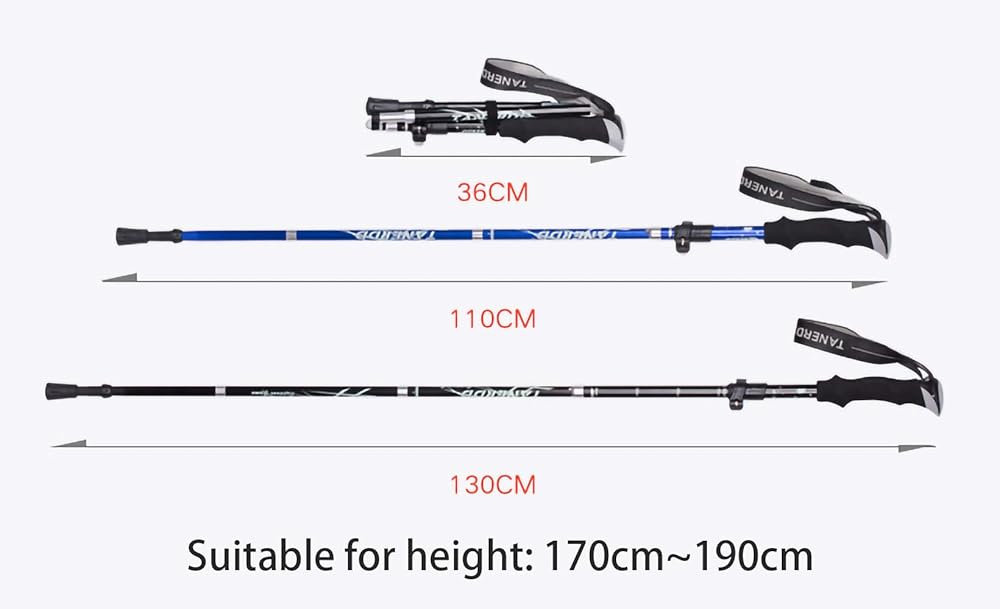 Trekking poles is provided with unique and easy to use folding system. So you can extend your poles from 43" All the way to 53" Quickly. When not in use, These are easy to folding down to less than 14" To be stored within your backpack.