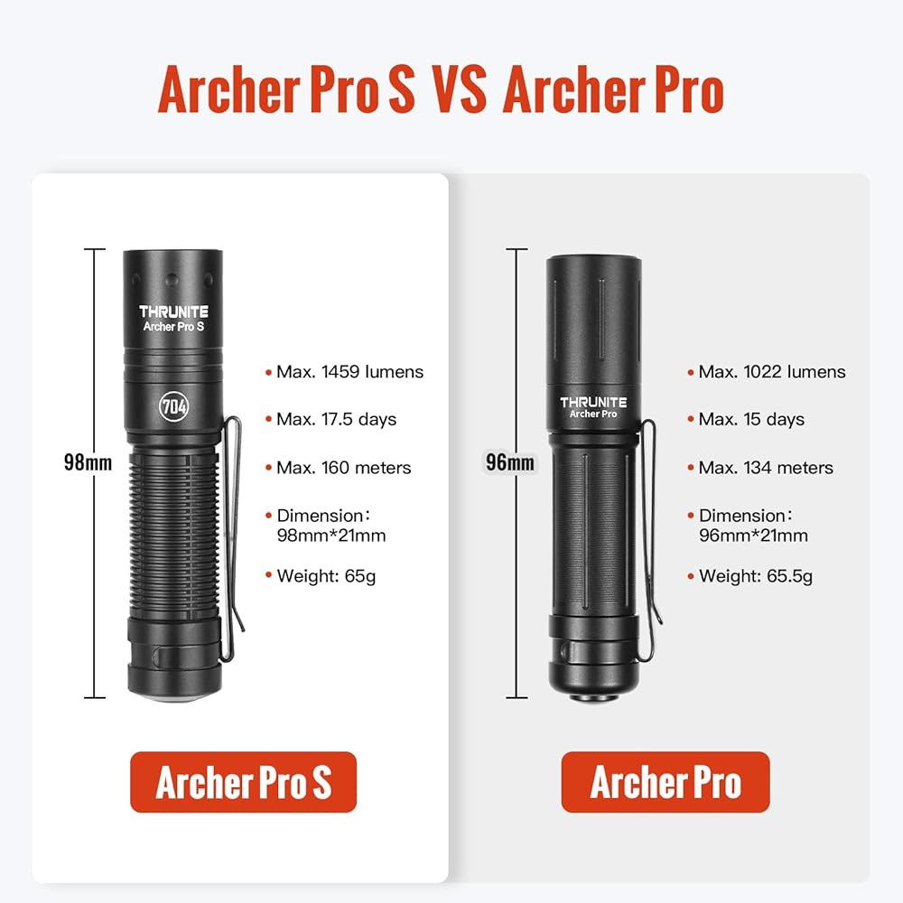 ThruNite Archer Pro S EDC Flashlight - Customized Edition with 704 Tactical, 1459 High Lumens Cool White LED, USB-C Rechargeable Flashlight with Tail Switch for Camping & Outdoor Use