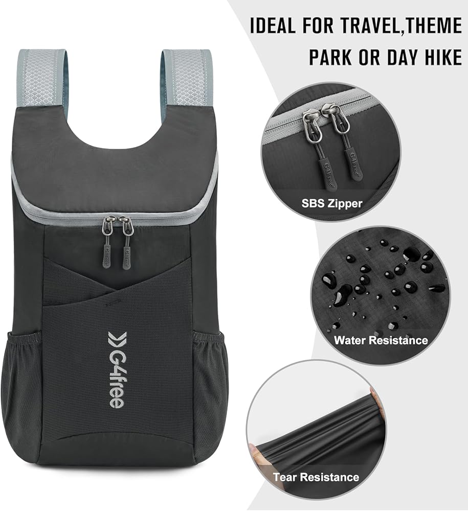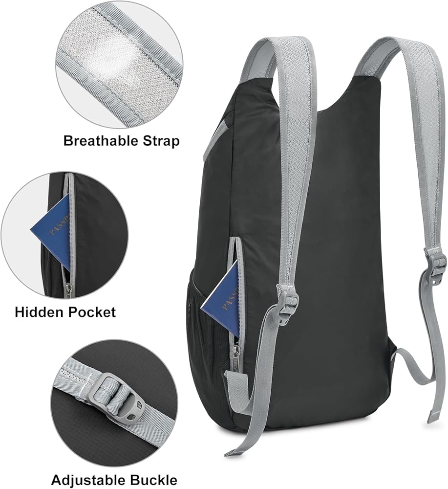 【Lightweight and Foldable】 Unfold size: 10*6.7*15.7 inches. Ultralight weight: only 0.39 pounds, half the weight of a regular hiking backpack. The hiking daypack is easy to fold and fit into an ultra-compact pouch. It's convenient to pack in your suitcase, purse, or car as a travel backpack without taking up too much space.