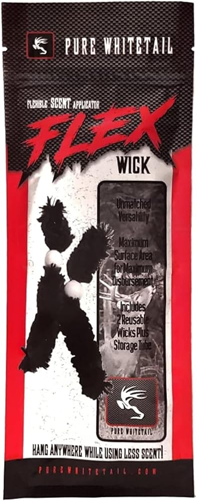 GAME CHANGER: Pure Whitetail's Patent Pending Flex Wick is an extremely absorbent reusable flexible scent wick for use with all hunting scents. Super soft wicking fibers hold scents like nothing else in the industry. Unique design allows air to flow through fibers, carrying scent greater distances.