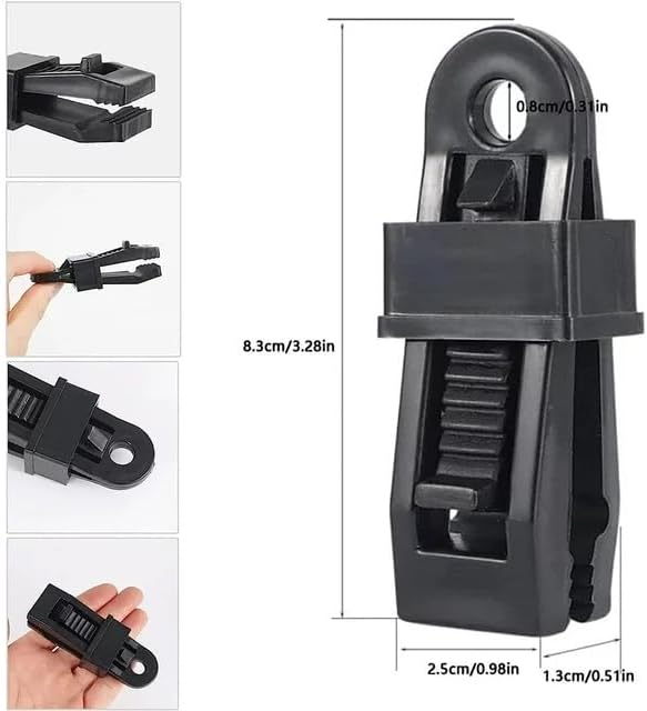 The tarp clip is made of durable plastic material, which is lightweight, portable, wear-resistant and reusable.